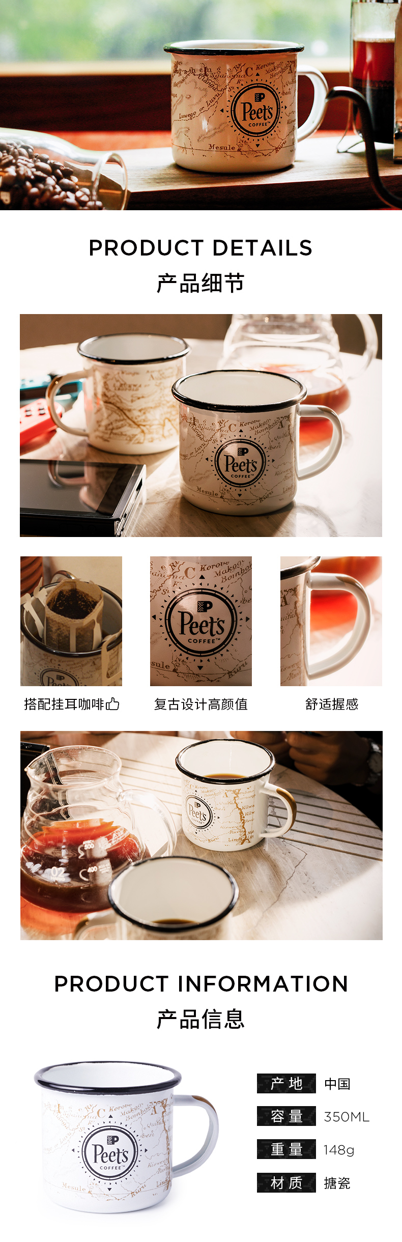 Peet's coffee皮爷复古搪瓷杯办公室挂耳咖啡专用杯350ml