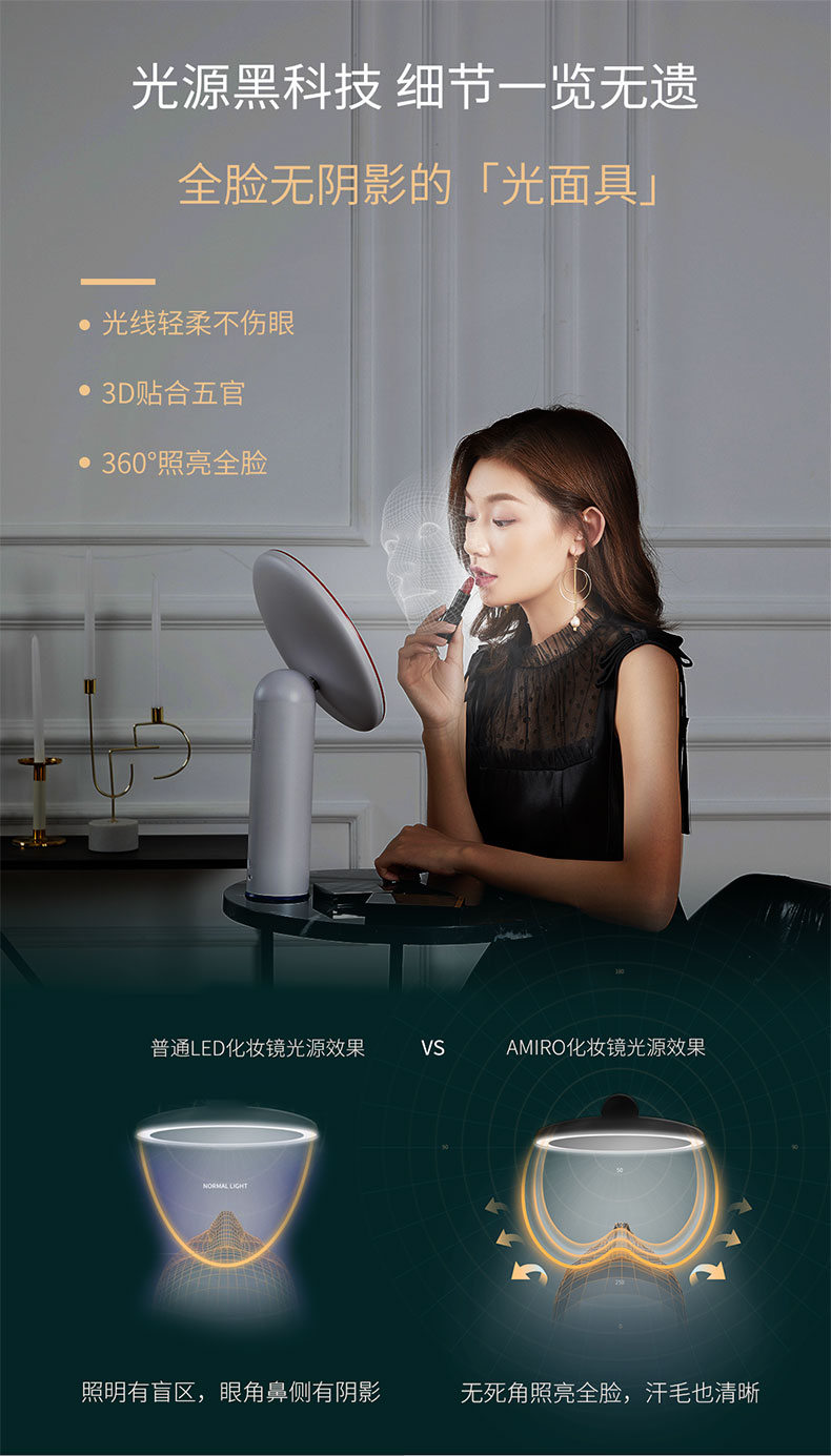 AMIRO 化妆镜奢金款 绿色