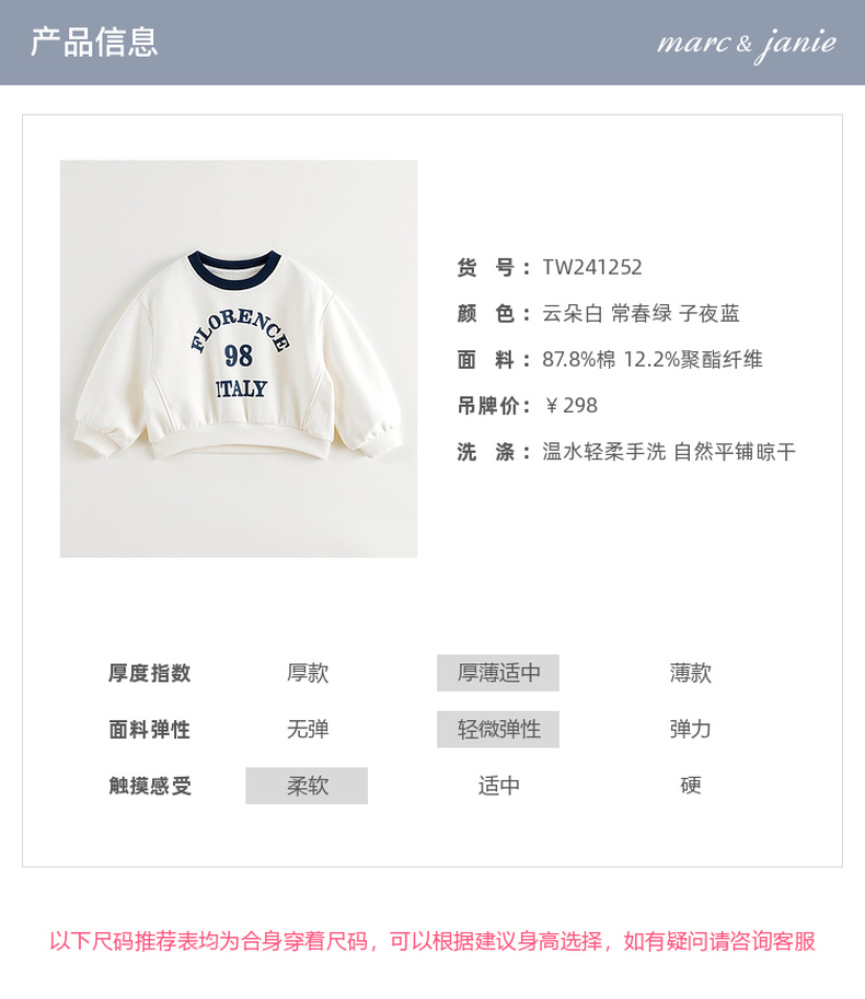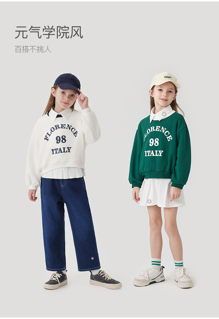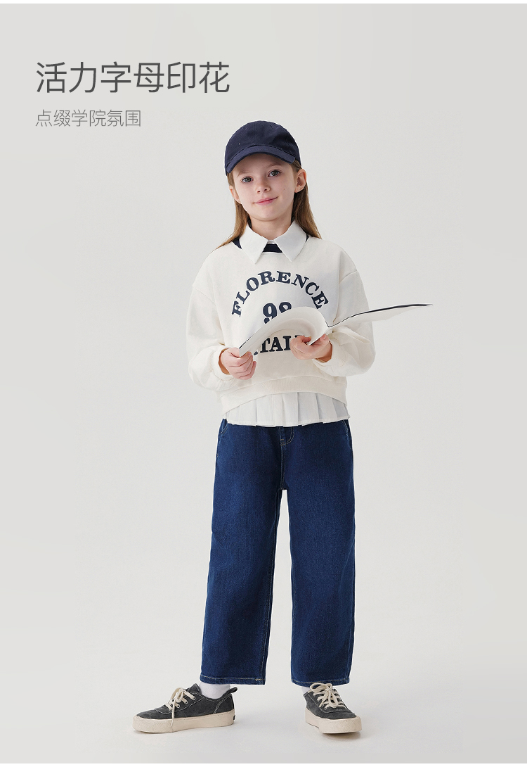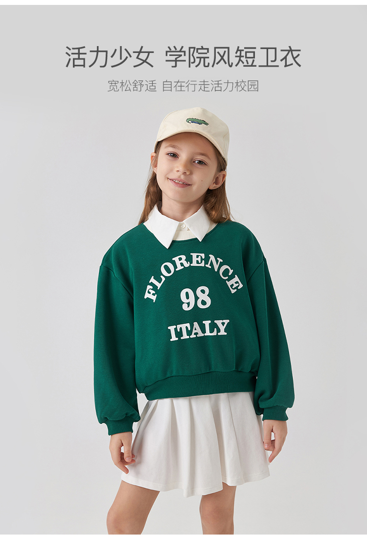 马克珍妮女童休闲学院撞色字母短款卫衣儿童上衣秋装新款241252