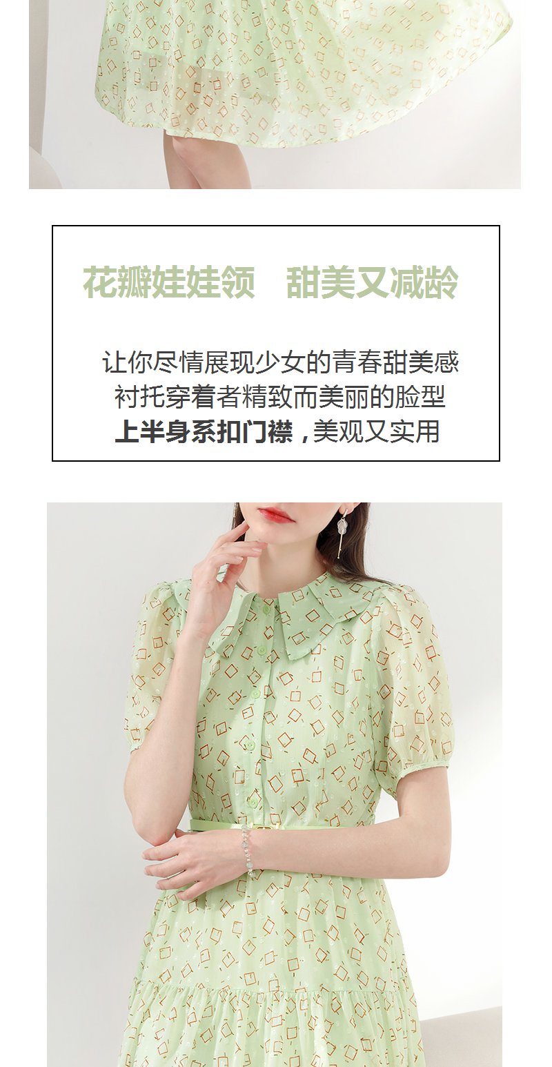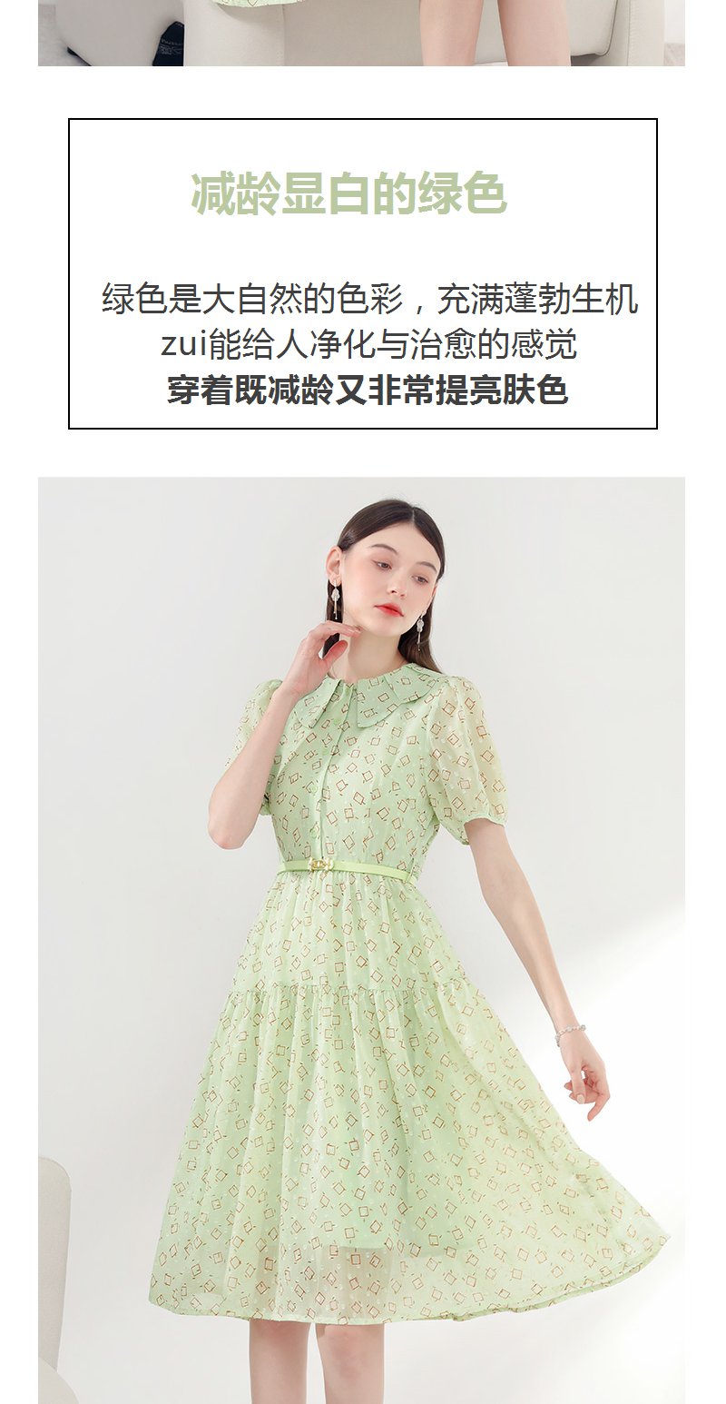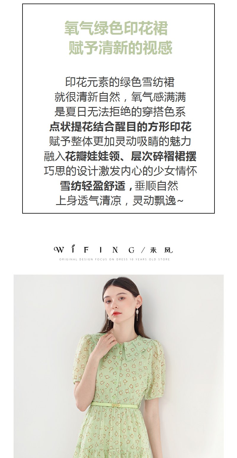 未风绿色雪纺连衣裙女夏2025夏季新款女装法式泡泡袖今年流行裙子