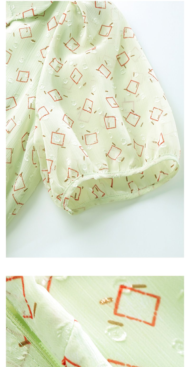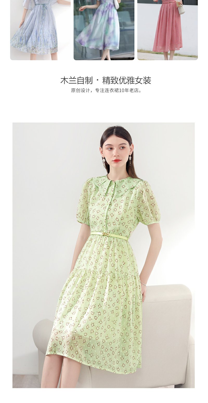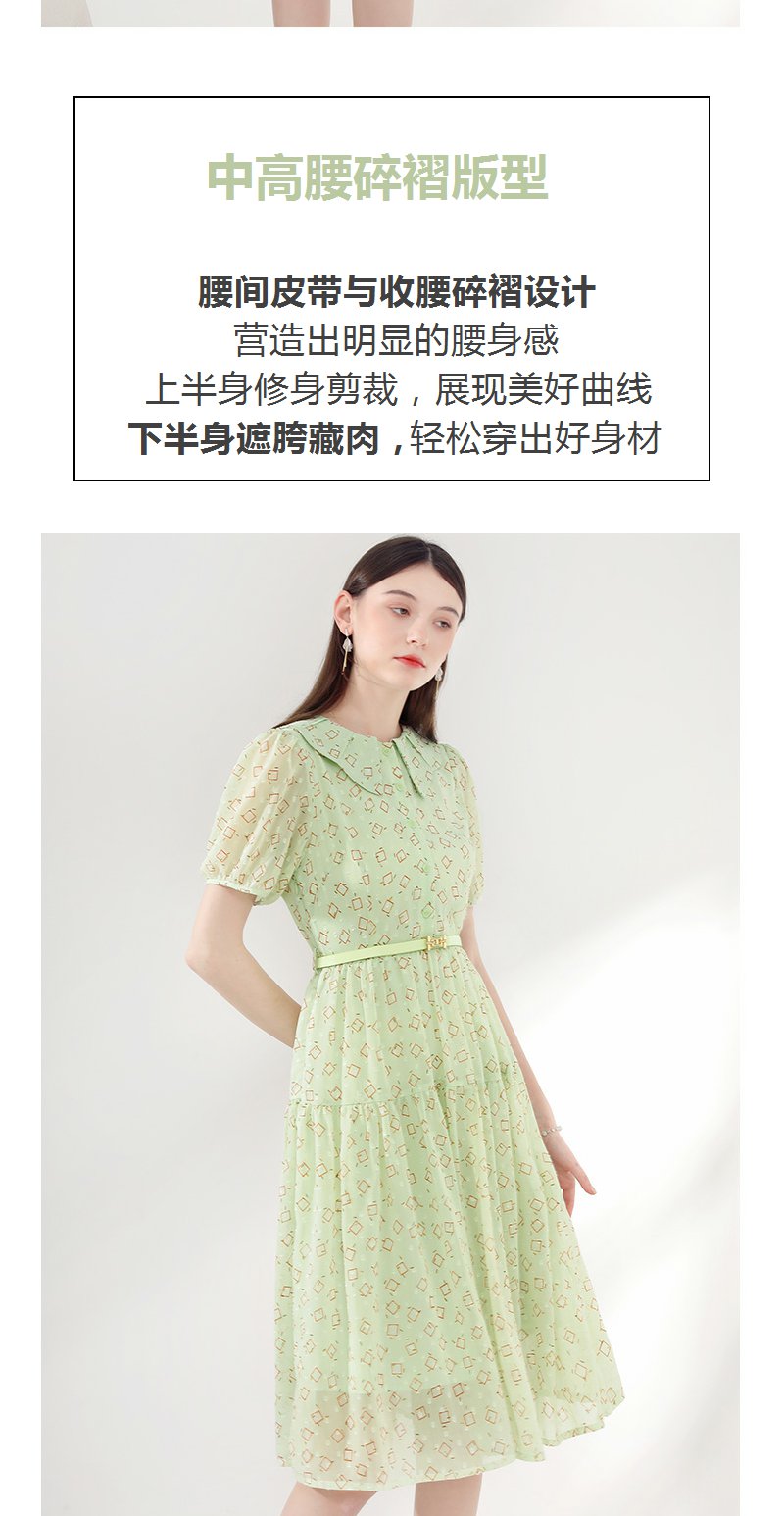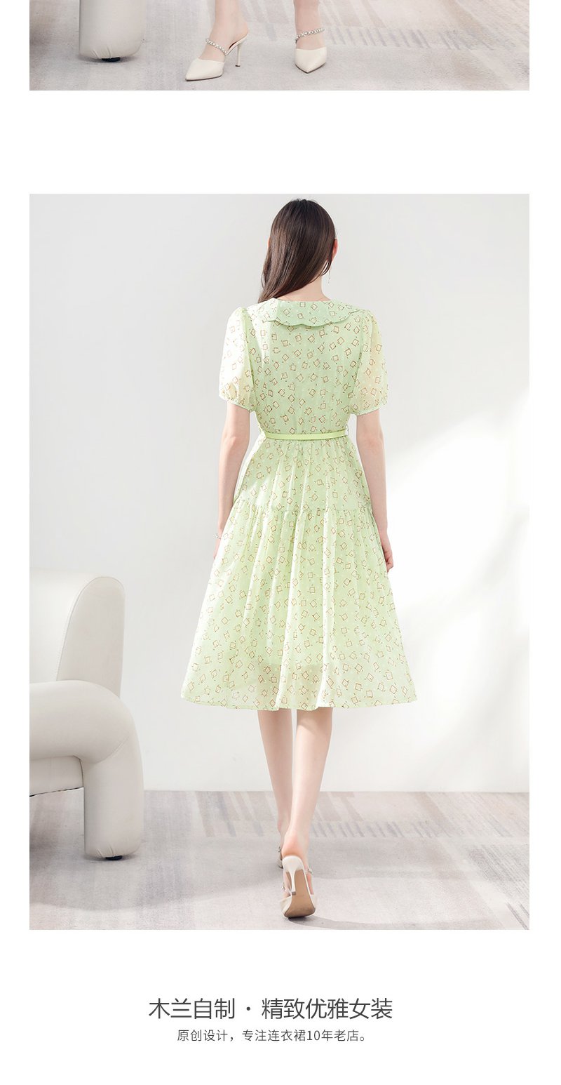 未风绿色雪纺连衣裙女夏2025夏季新款女装法式泡泡袖今年流行裙子