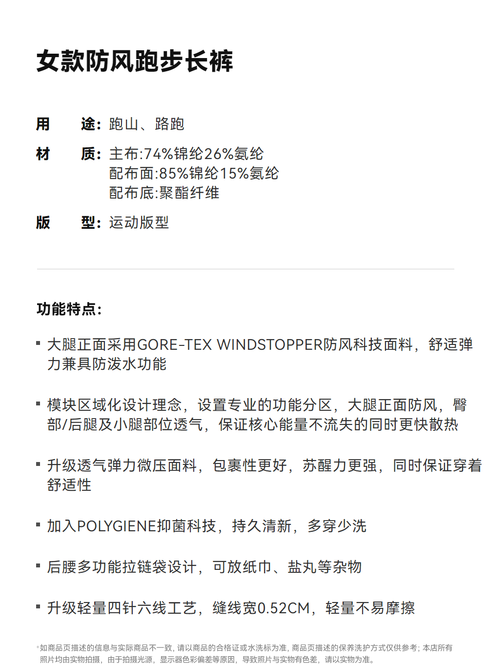 KAILAS凯乐石 户外运动 女款防风跑步长裤 KG2435425【Z】