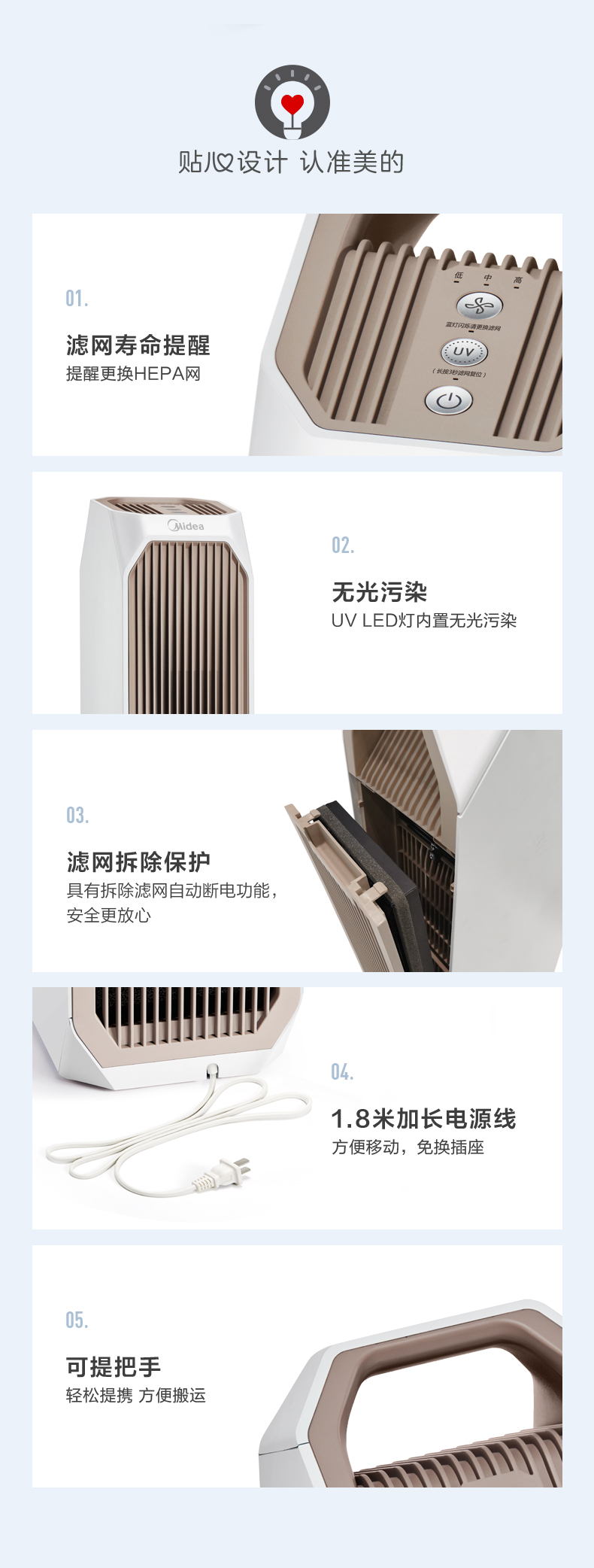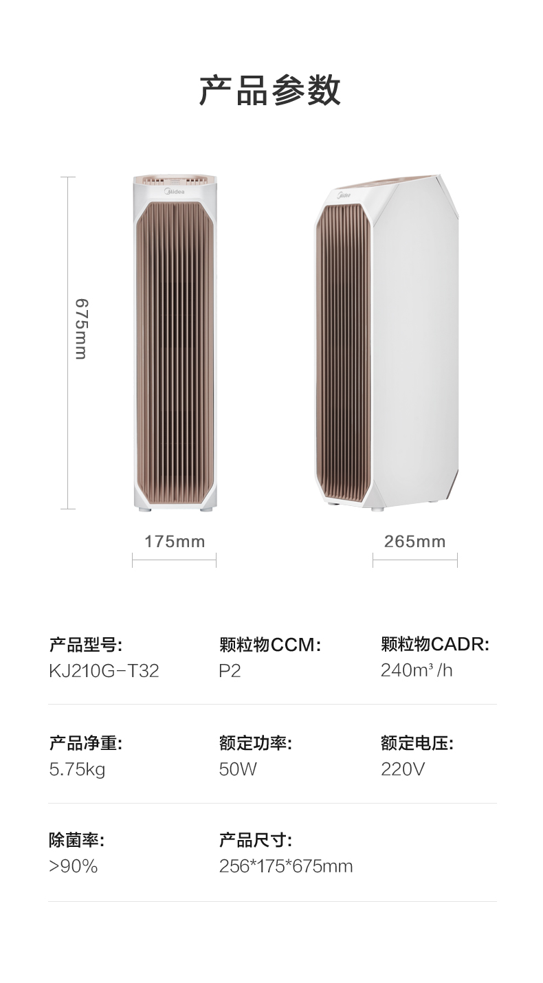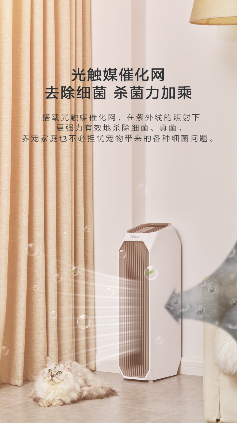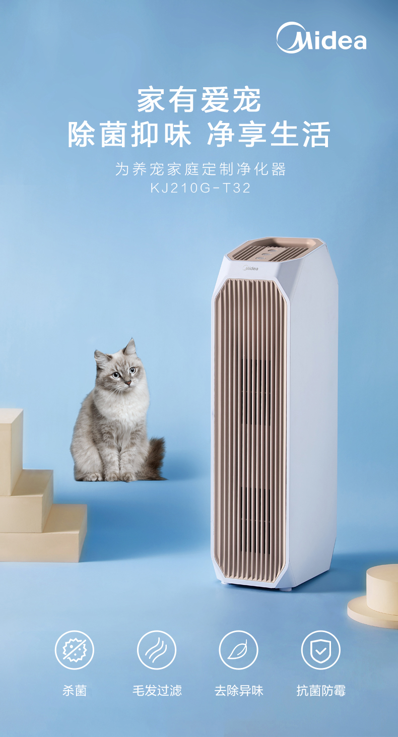 美的(Midea)空气净化器宠物净化器卧室家用新风净化器KJ210G-T32