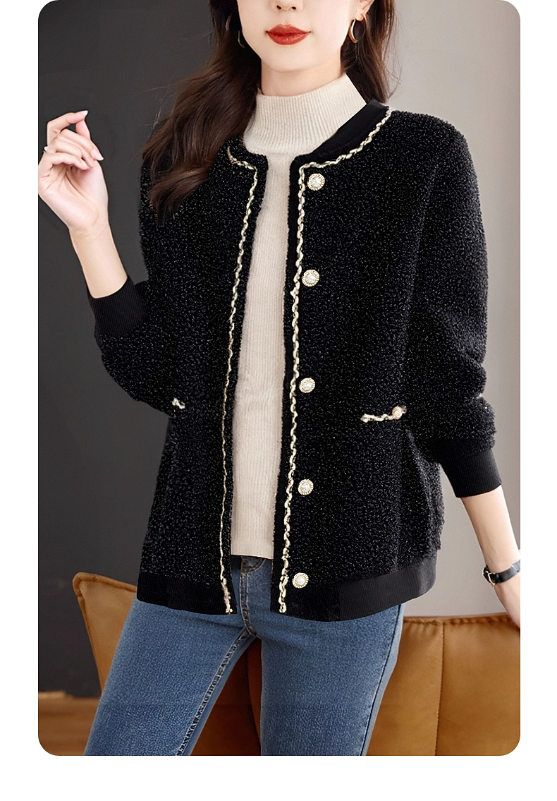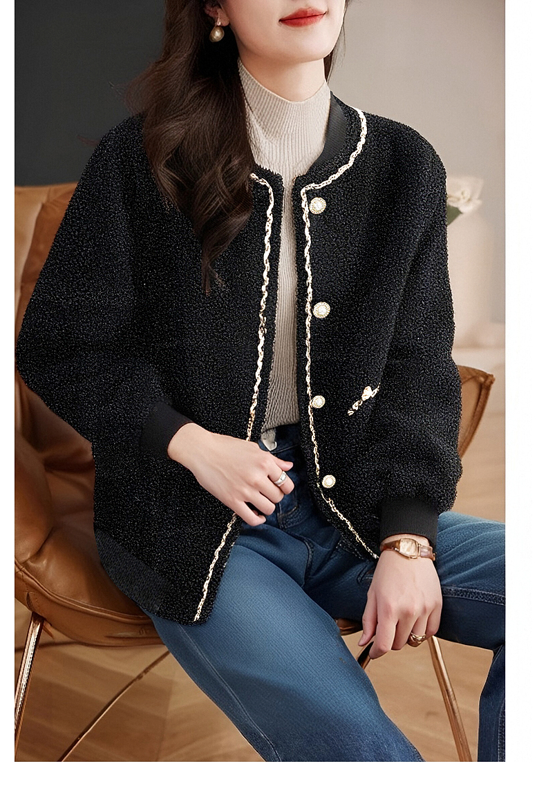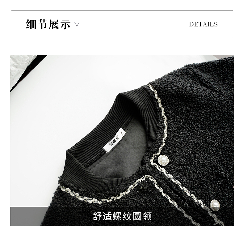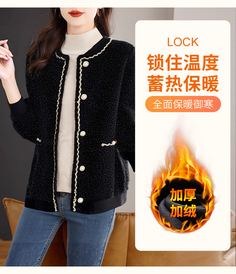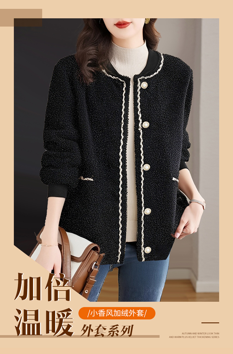 加绒小香风外套女士秋冬季新款大码女装摇粒绒棒球服黑色加厚上衣
