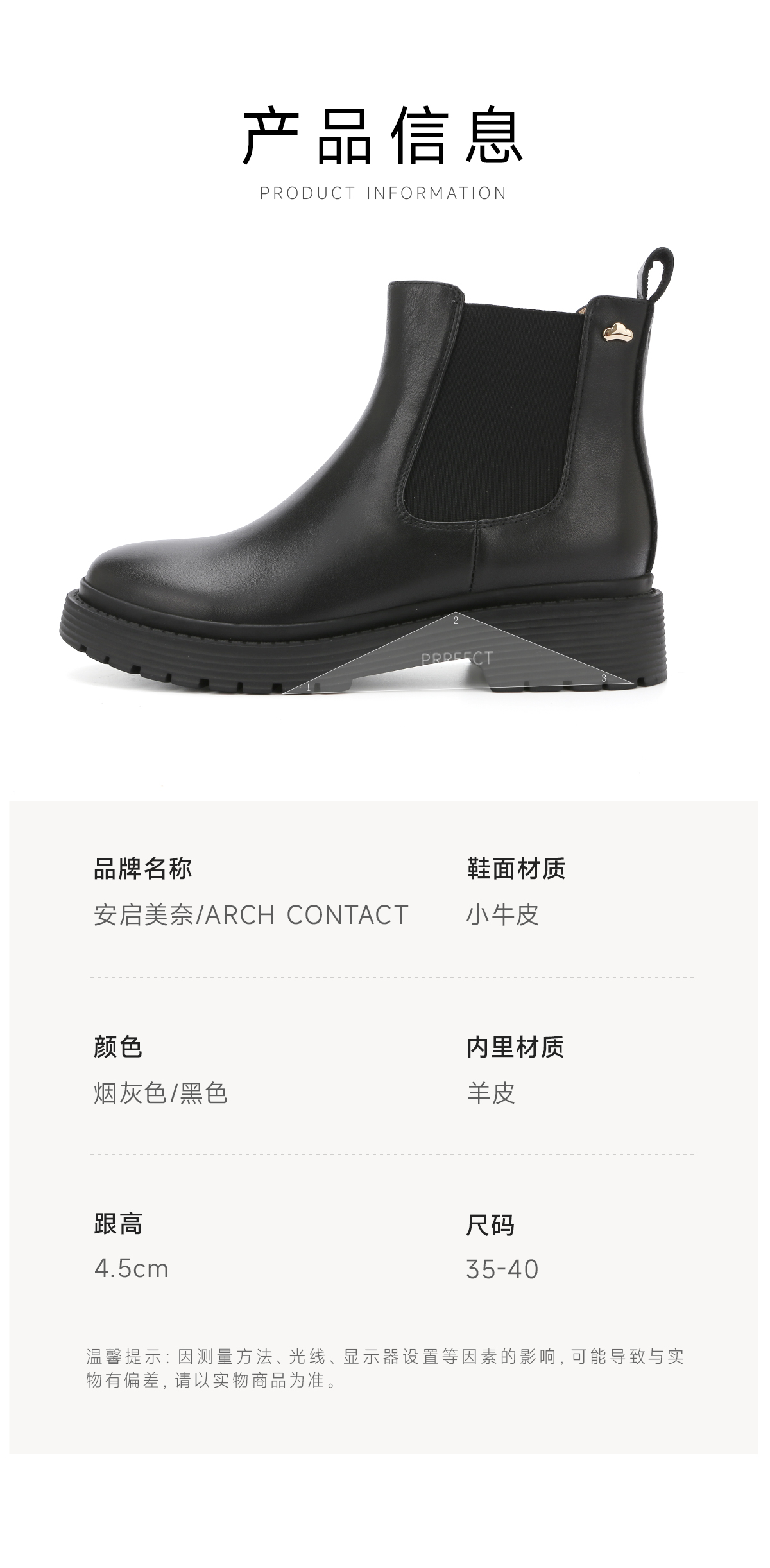 ARCHCONTACT安启美奈厚底高筒百搭舒适切尔西靴52963