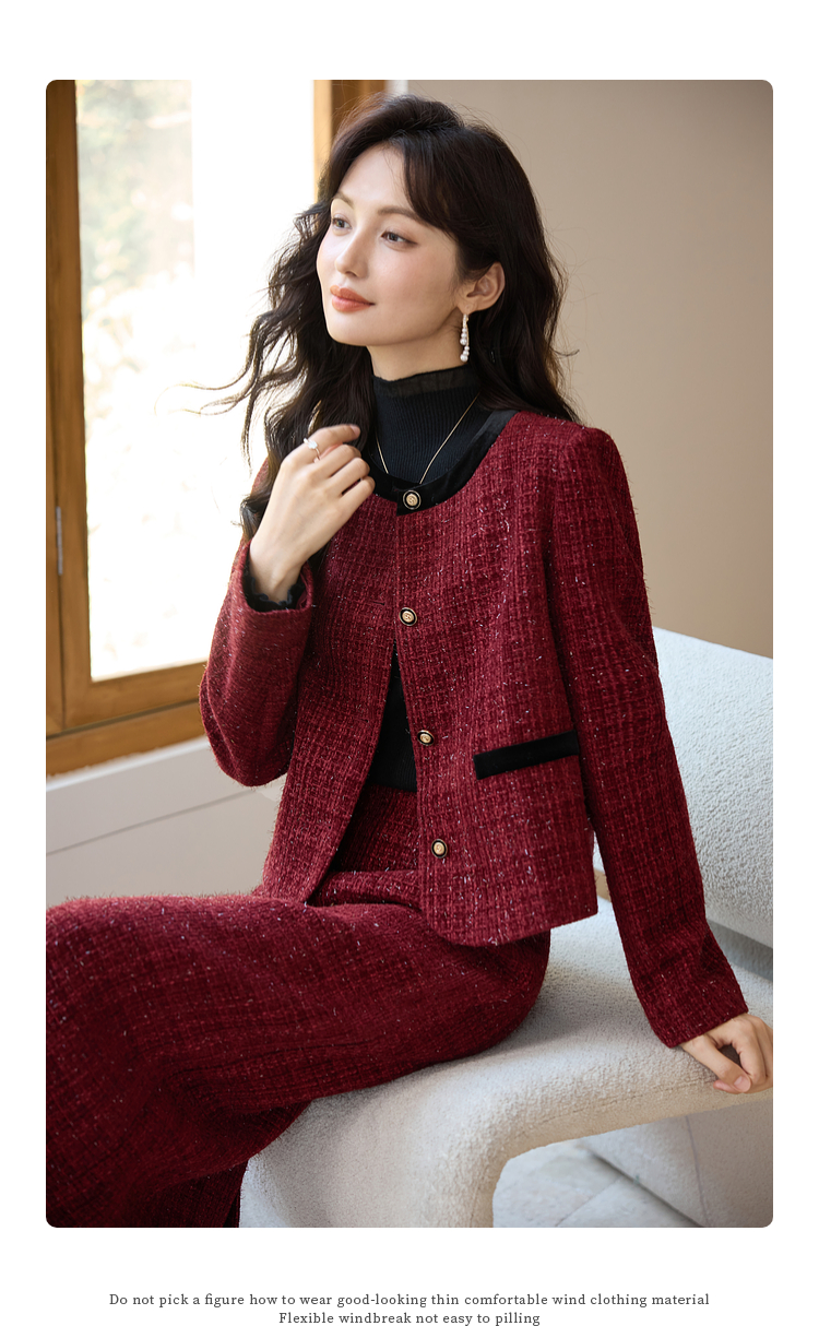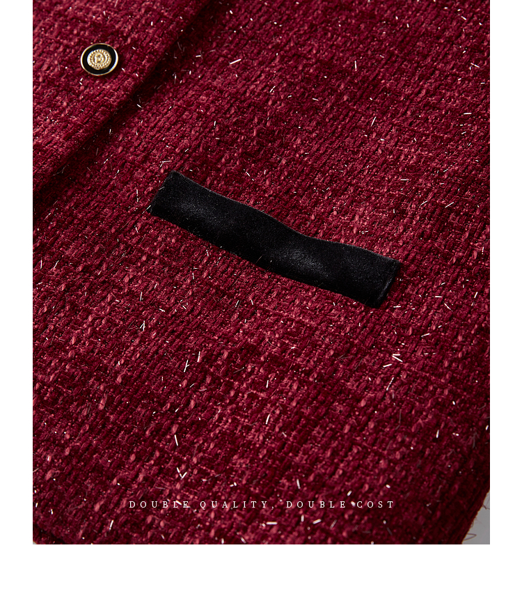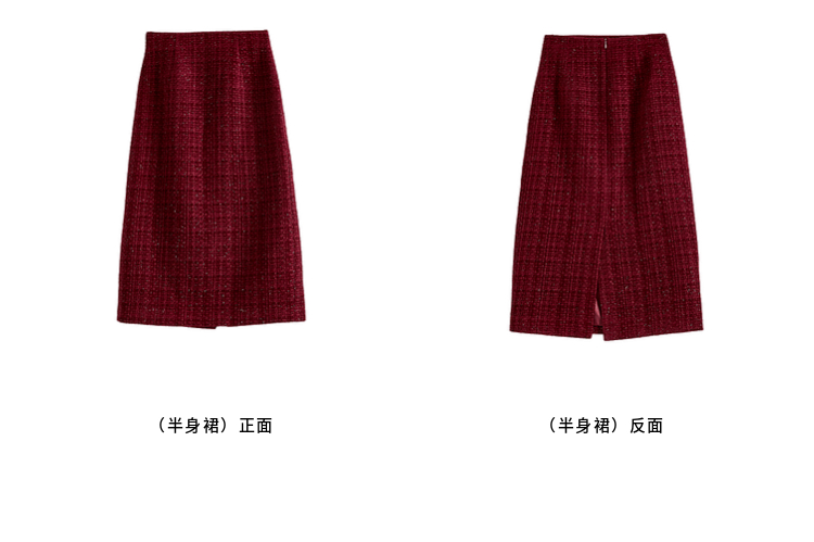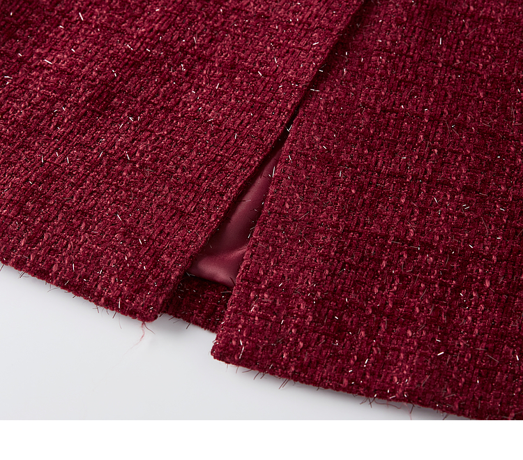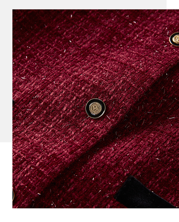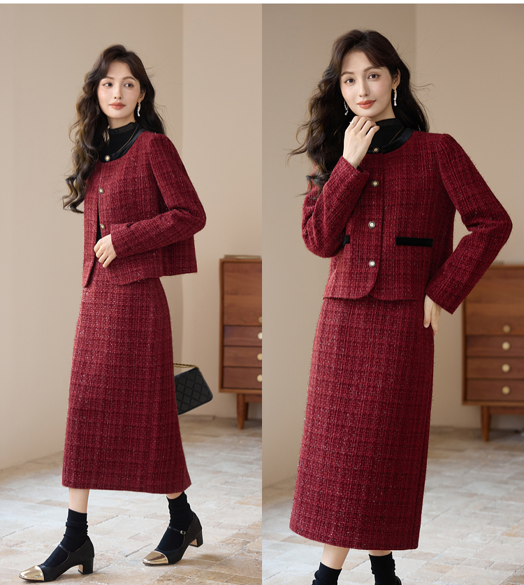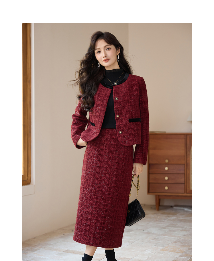 【专属特惠】熙世界红色小香风套装女秋冬季名媛气质粗花呢短外套半身裙两件套