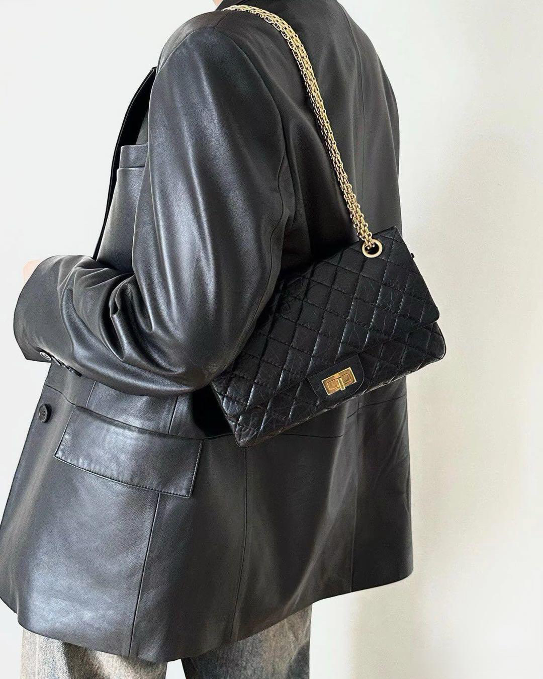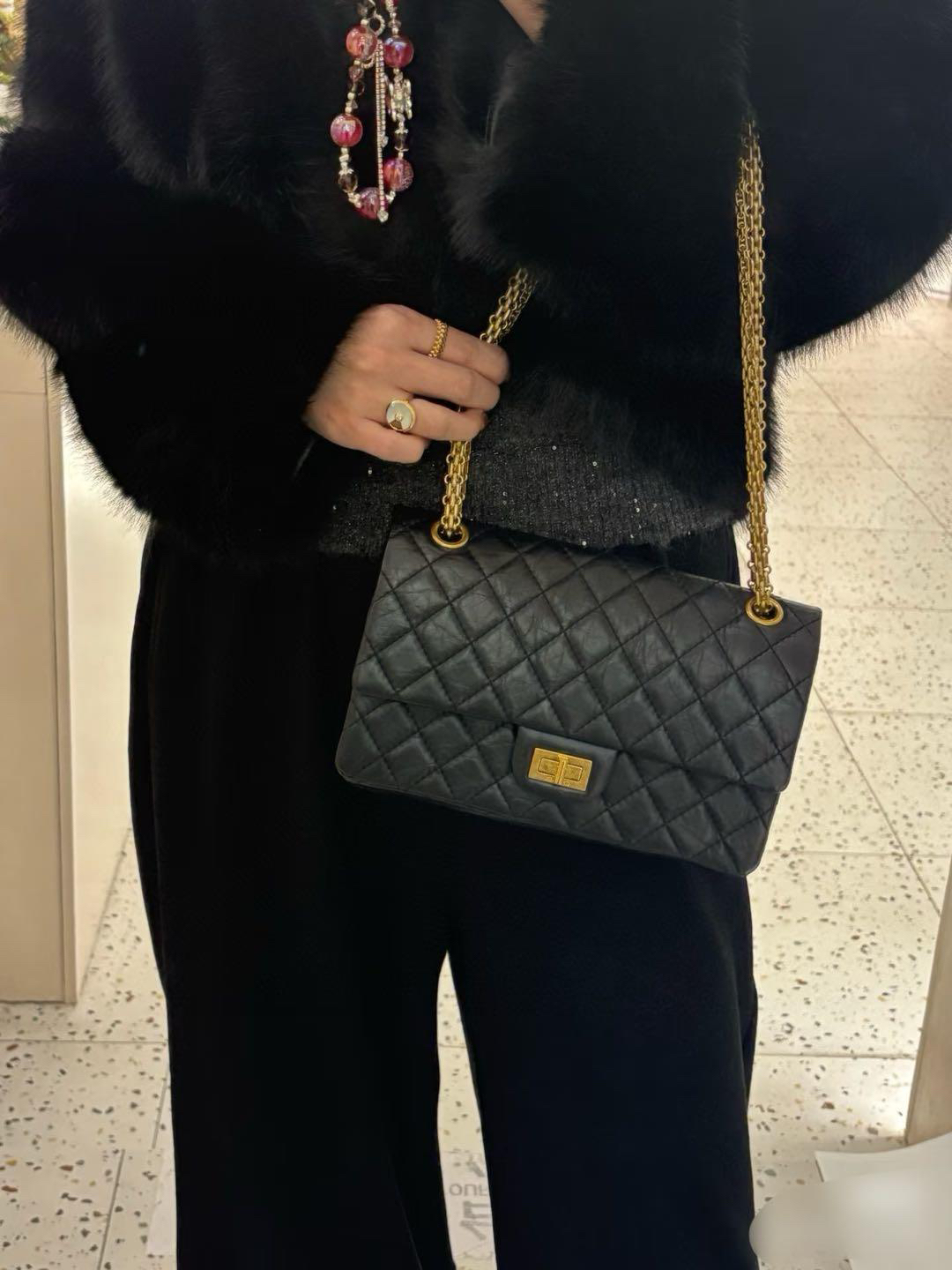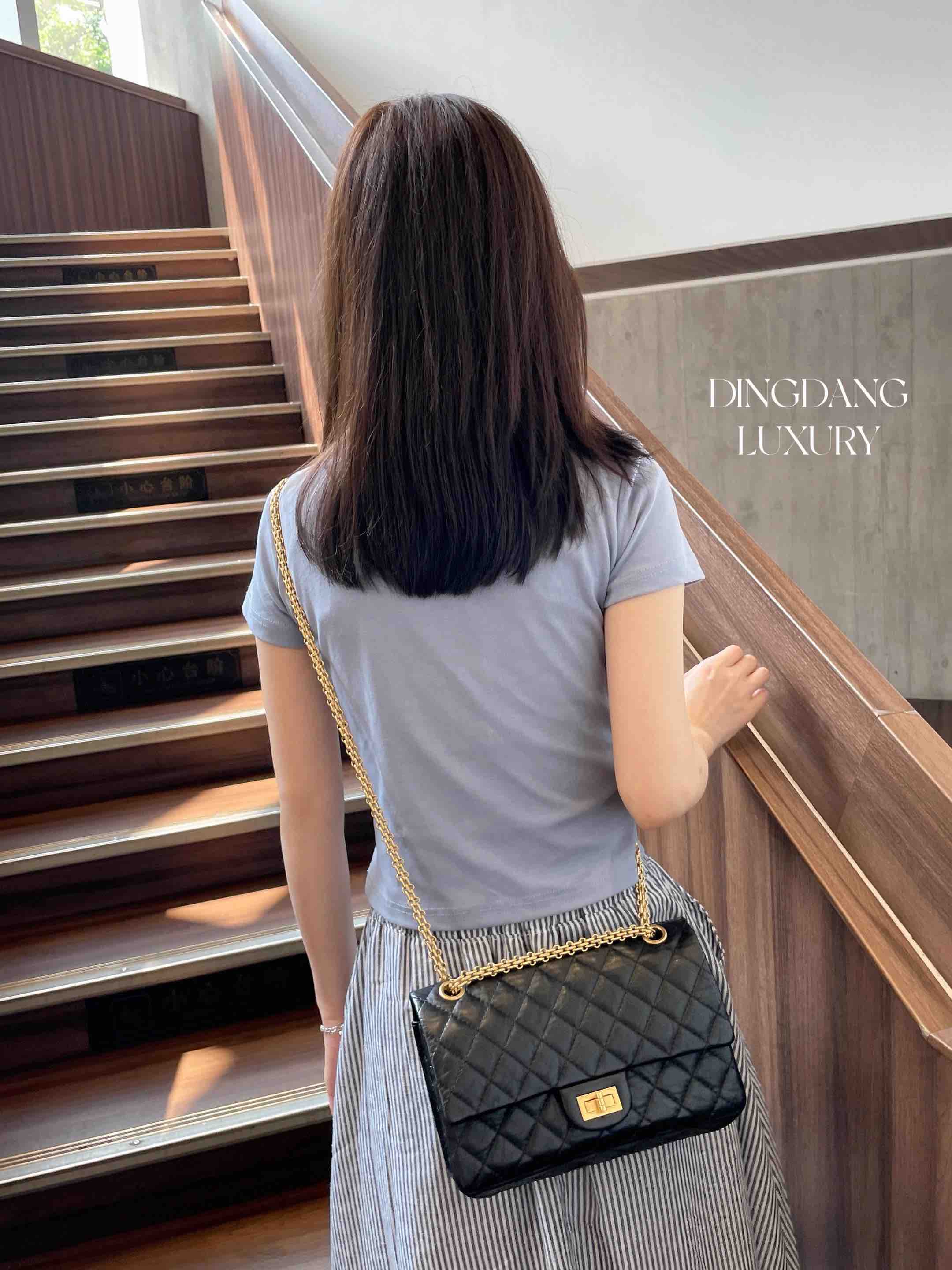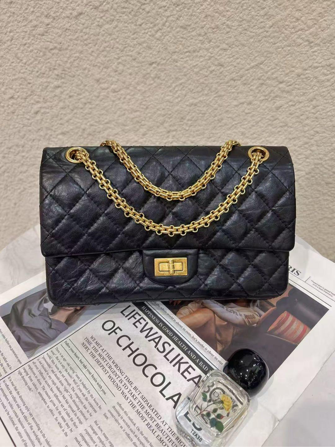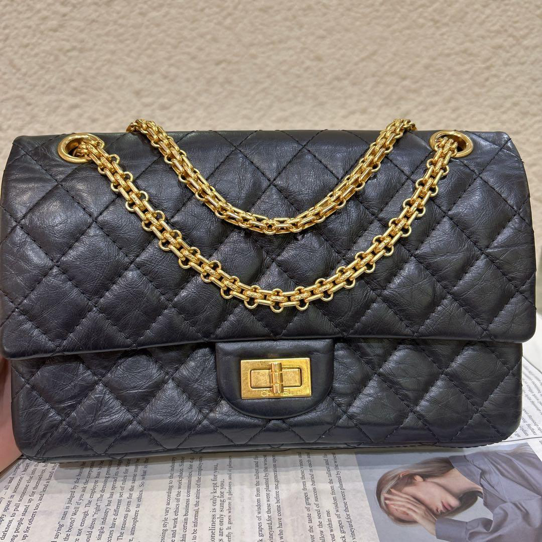 【商品详情】正品二手 Chanel 油蜡牛皮 2.55 黑金 小号 单肩包🙌🏻 97新 25×12 镭射21开 配件:防尘袋说明书 卡片。包身轻微使用感 其他较好