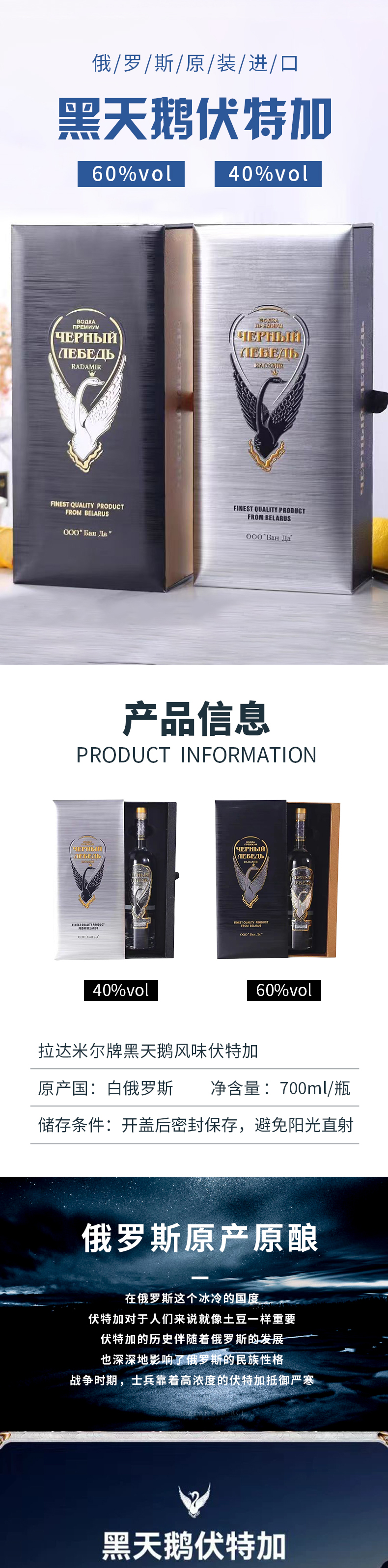 白俄罗斯进口拉达米尔牌黑天鹅风味伏特加700ml