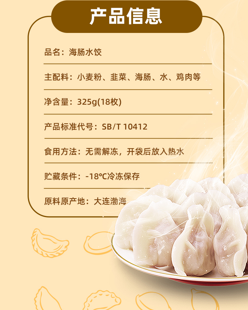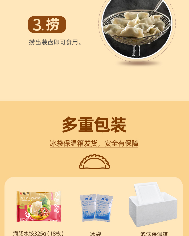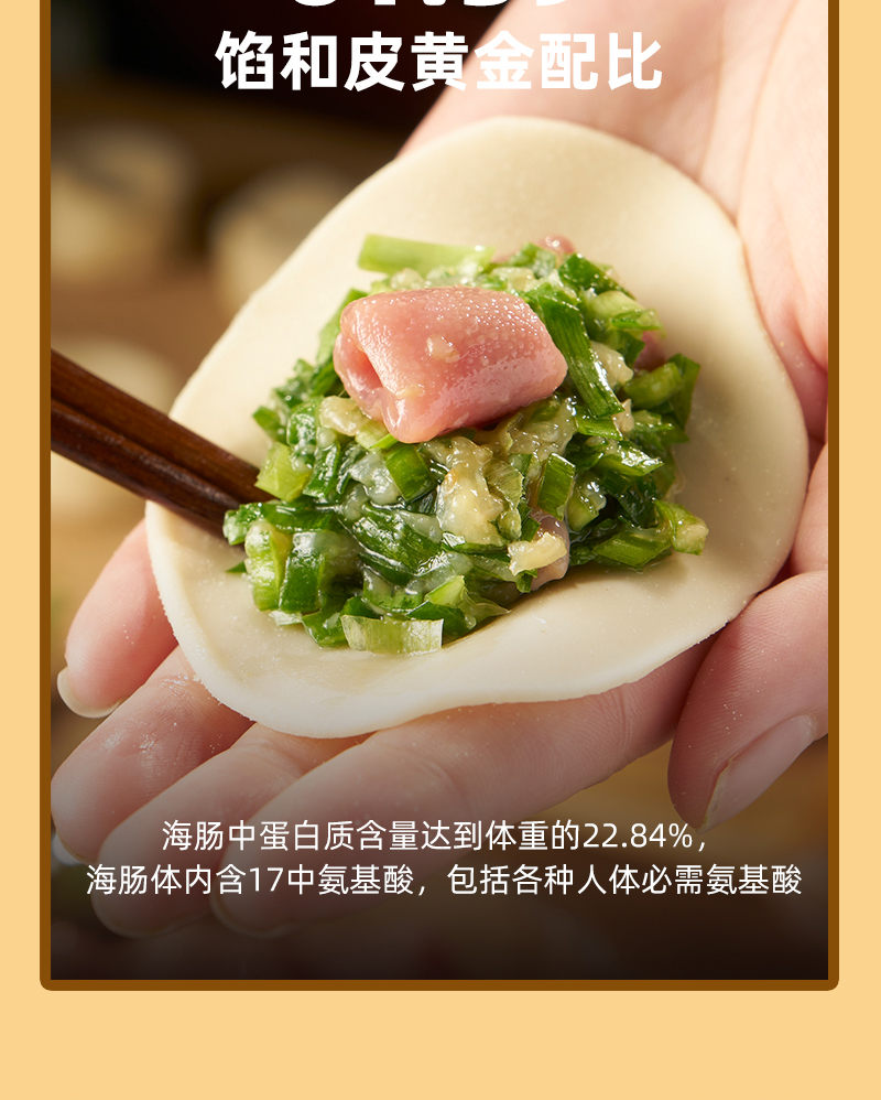 海大厨-海肠水饺 原价25.8元/盒,现价61.8元/3盒