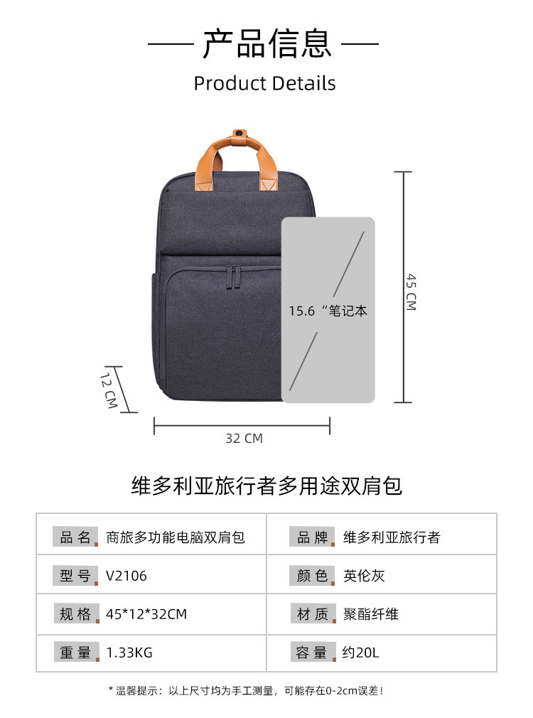 维多利亚旅行者多功能防泼水笔记本电脑包双肩包背包2106