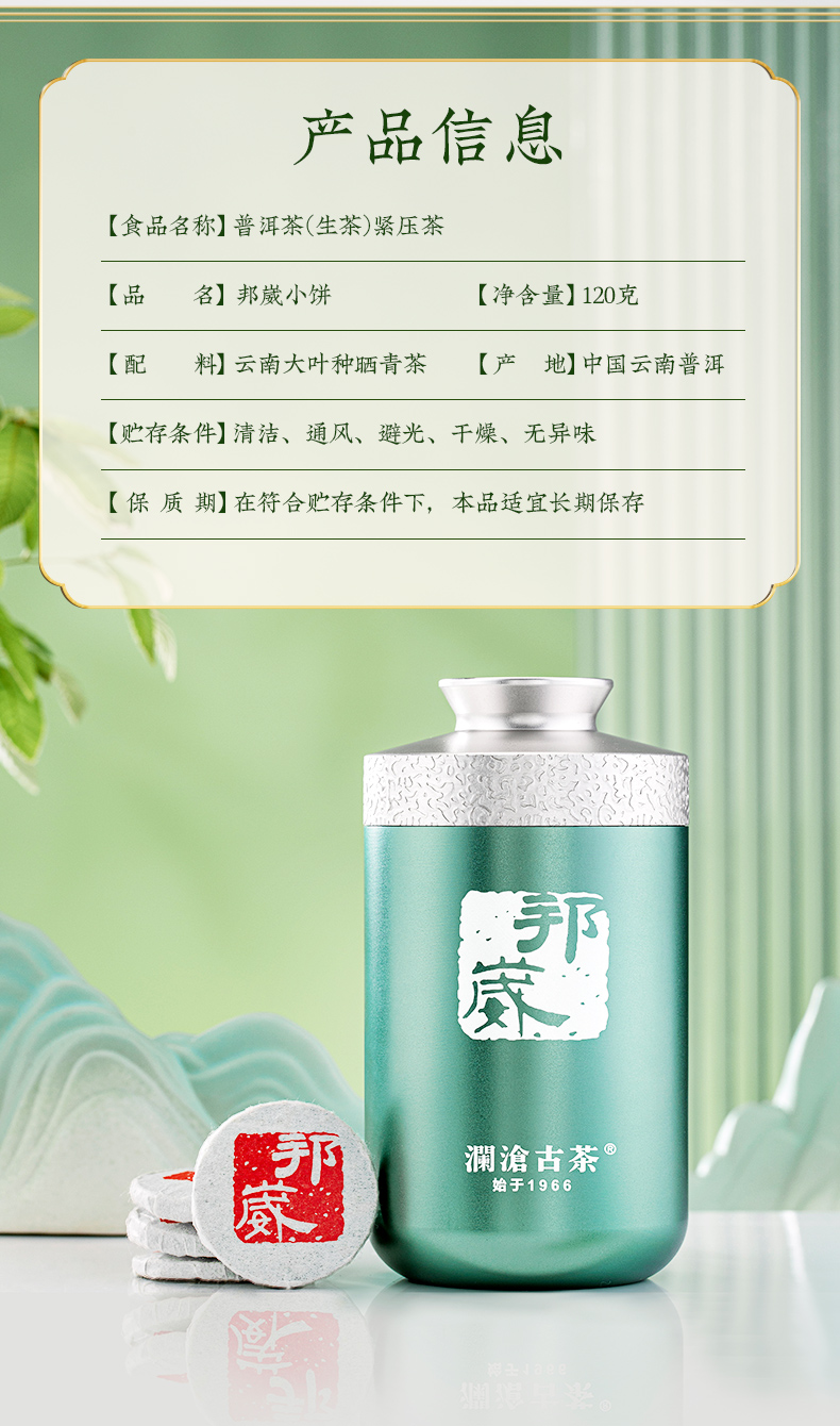 澜沧古茶2024年邦崴小饼(2011年原料)罐装普洱老生茶自饮好茶叶120g/罐