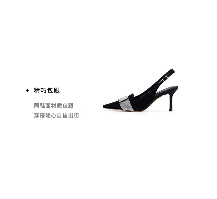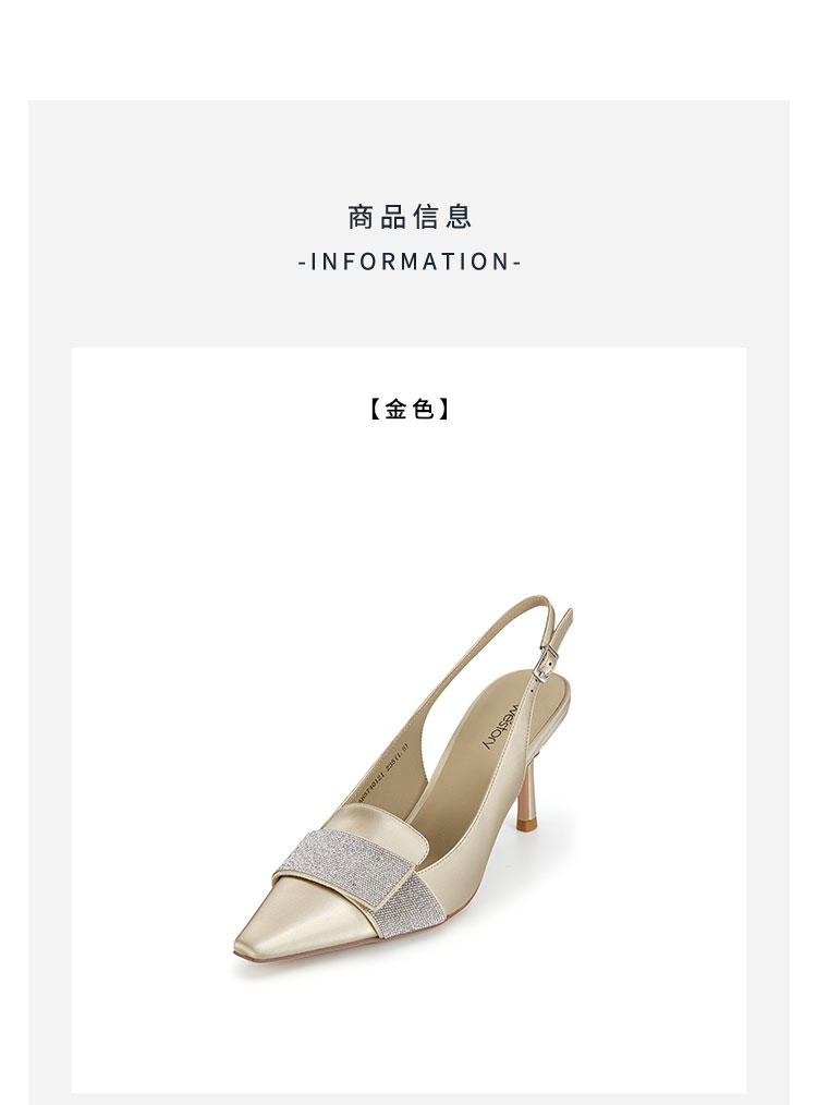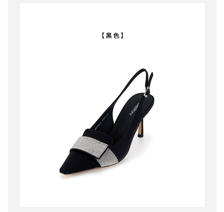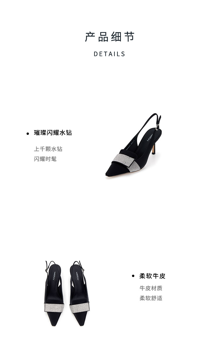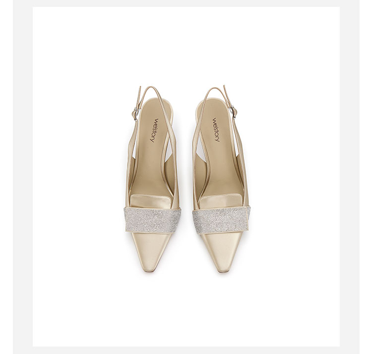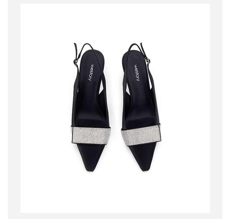westory2024春季新款细中跟尖头钻饰系带后空鞋皮鞋S24AH57401