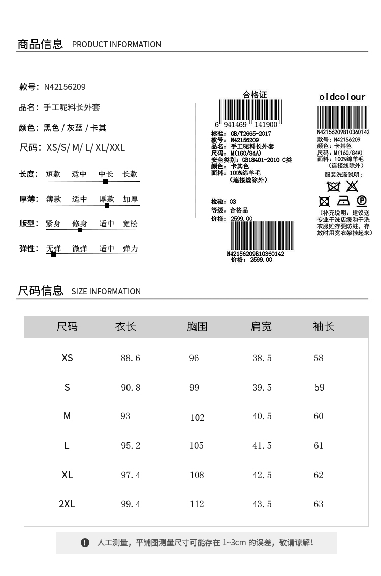 oldcolour2021冬季新款时尚气质修身百搭手工羊毛大衣N42156209