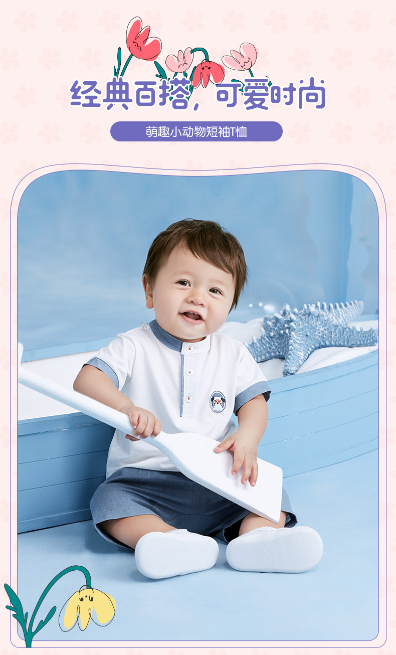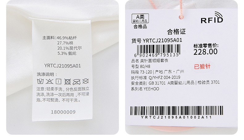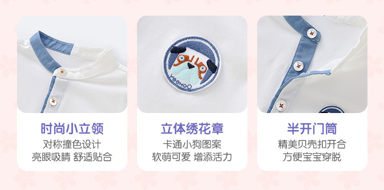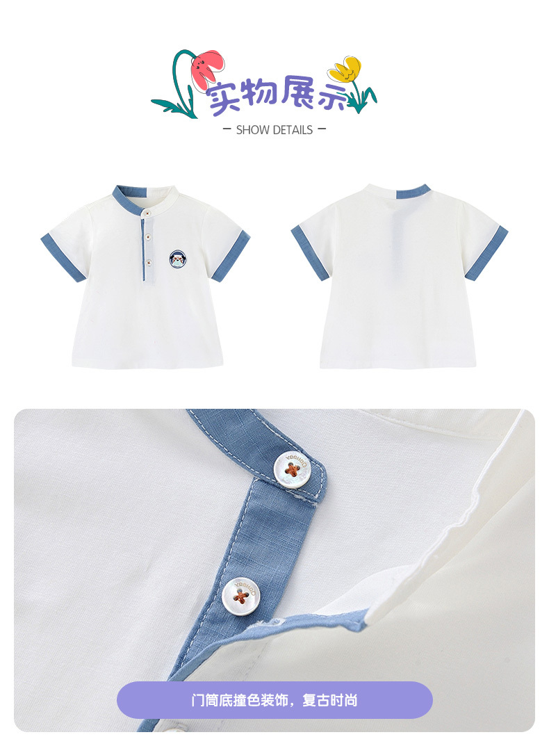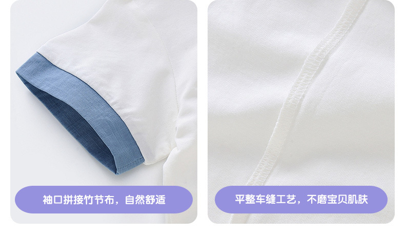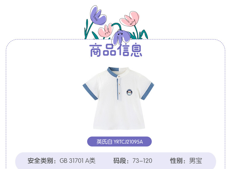 英氏-童衣类(夏)E1英针圆领短套衣英氏白73CM
