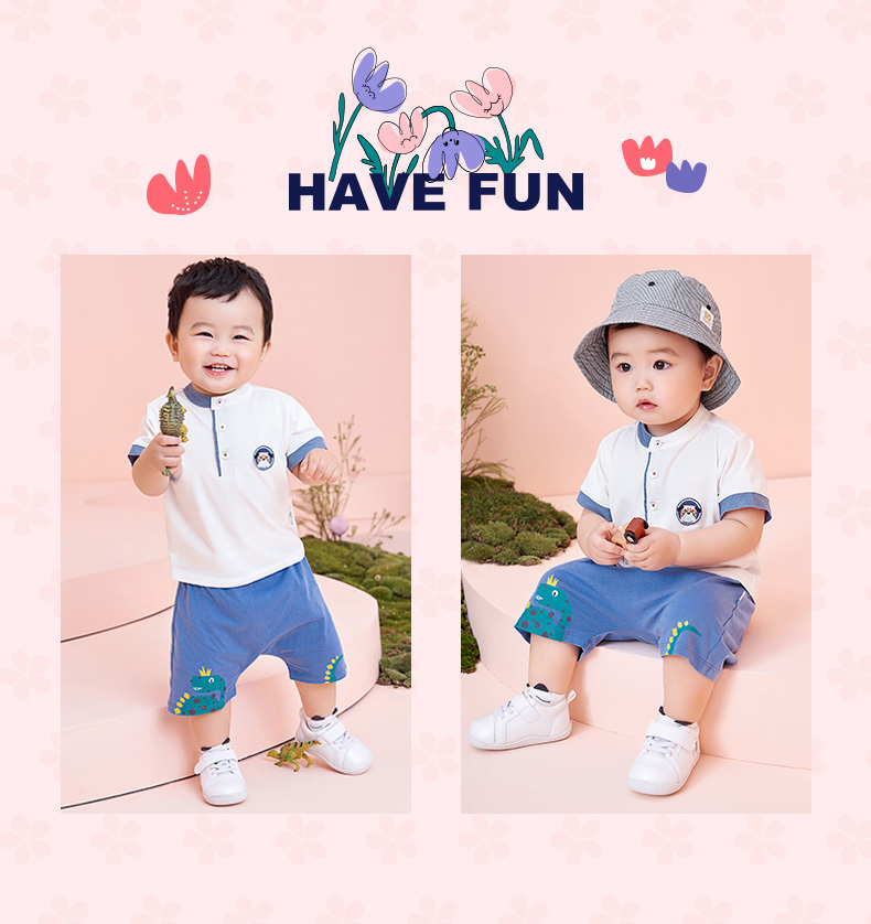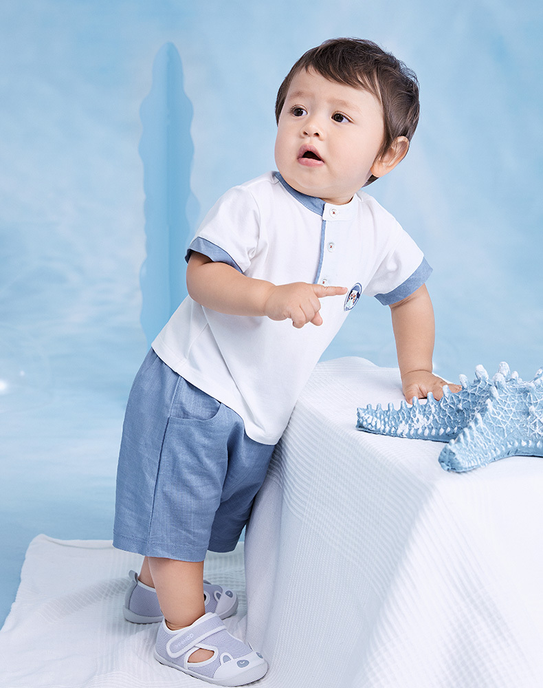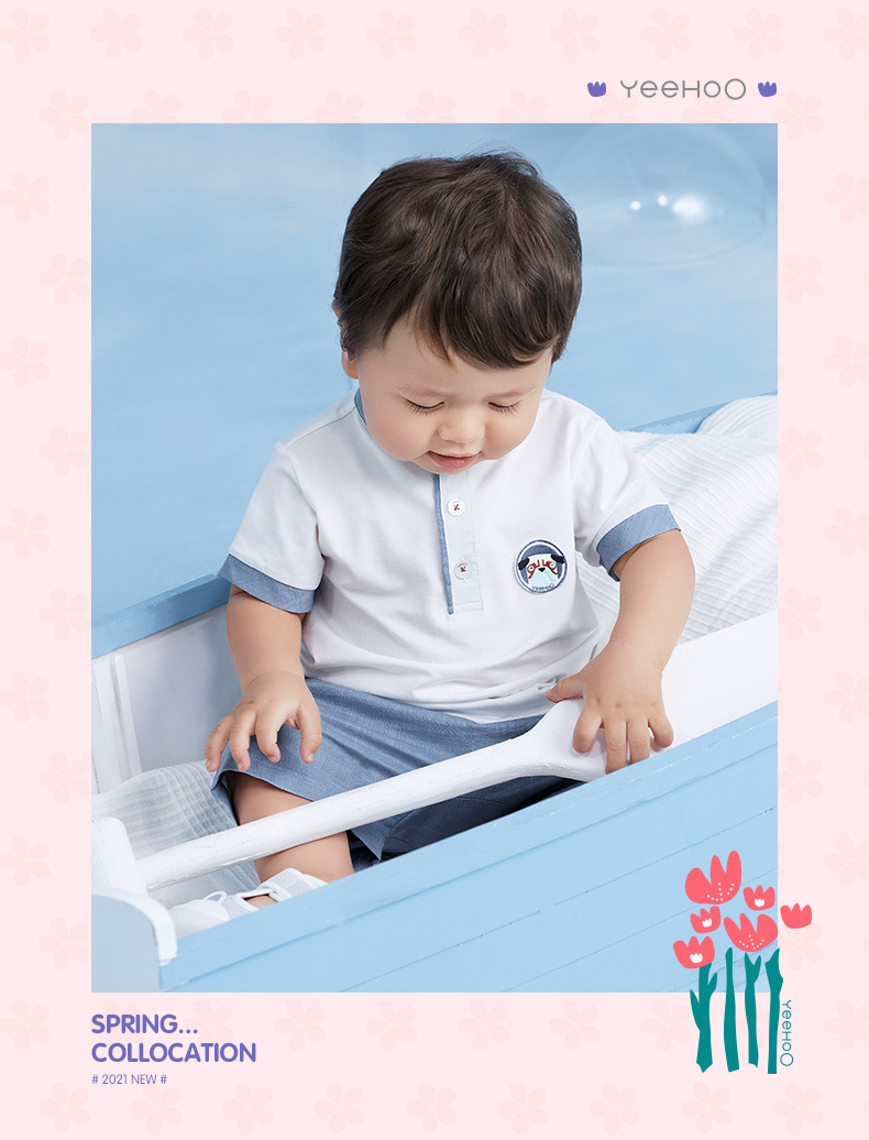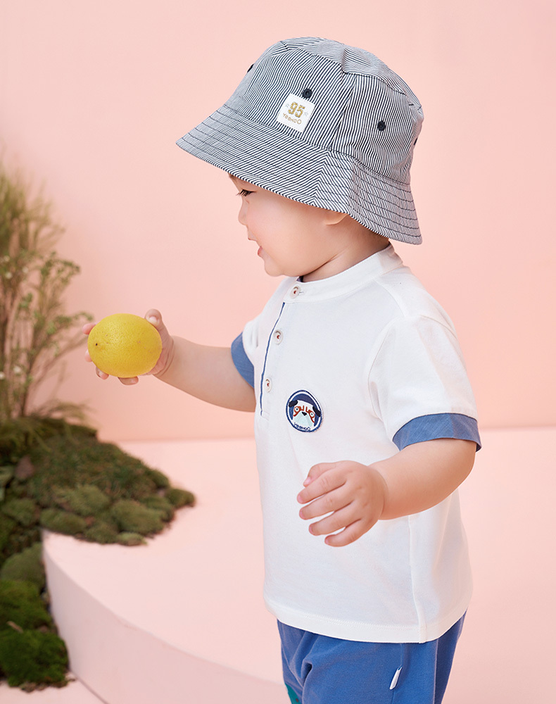 英氏-童衣类(夏)E1英针圆领短套衣英氏白73CM