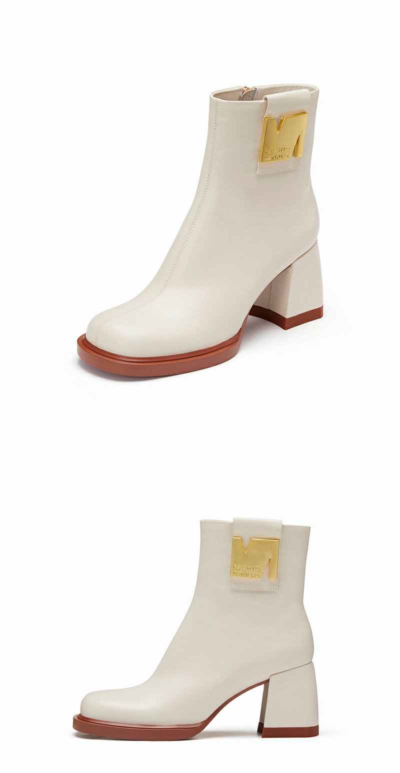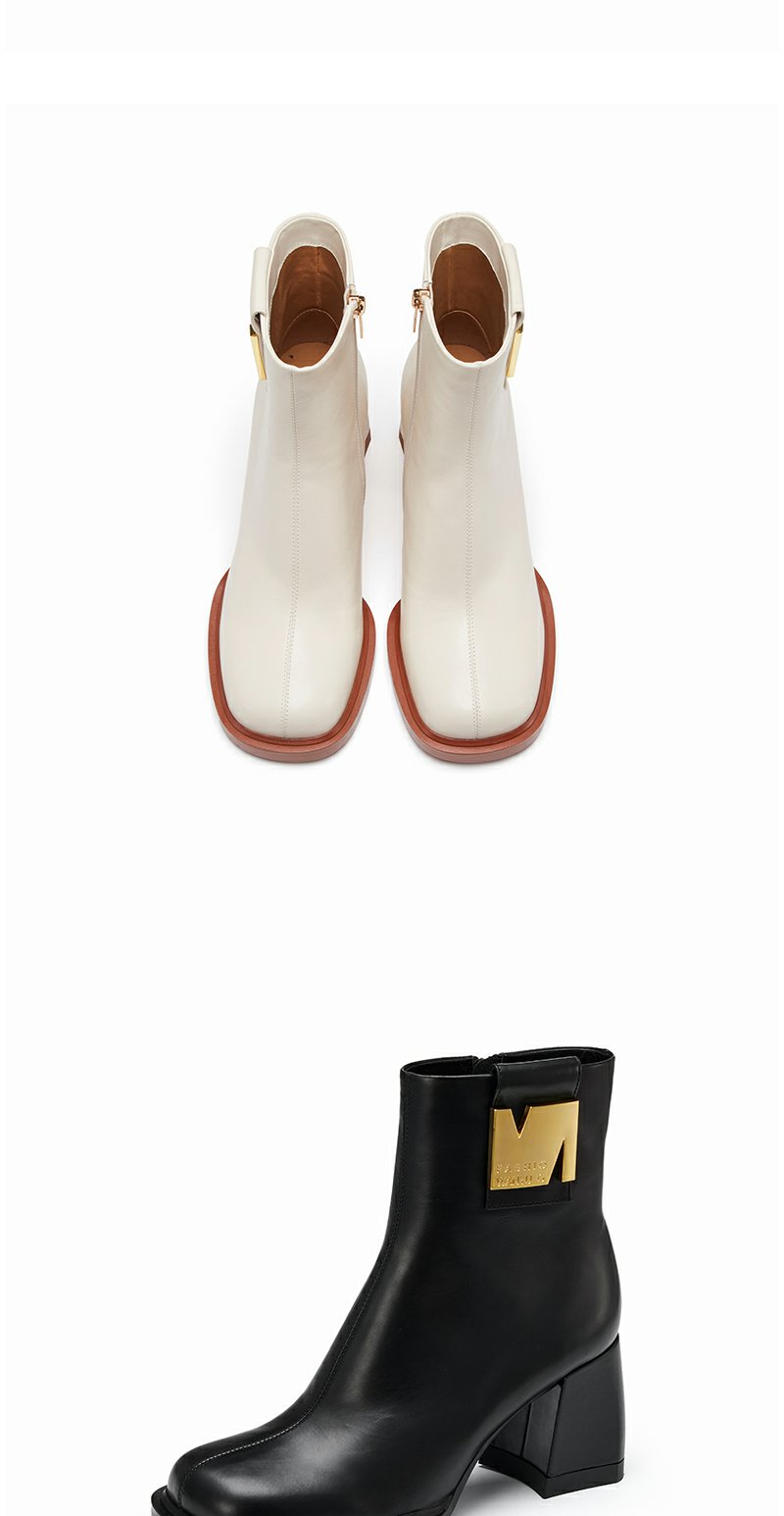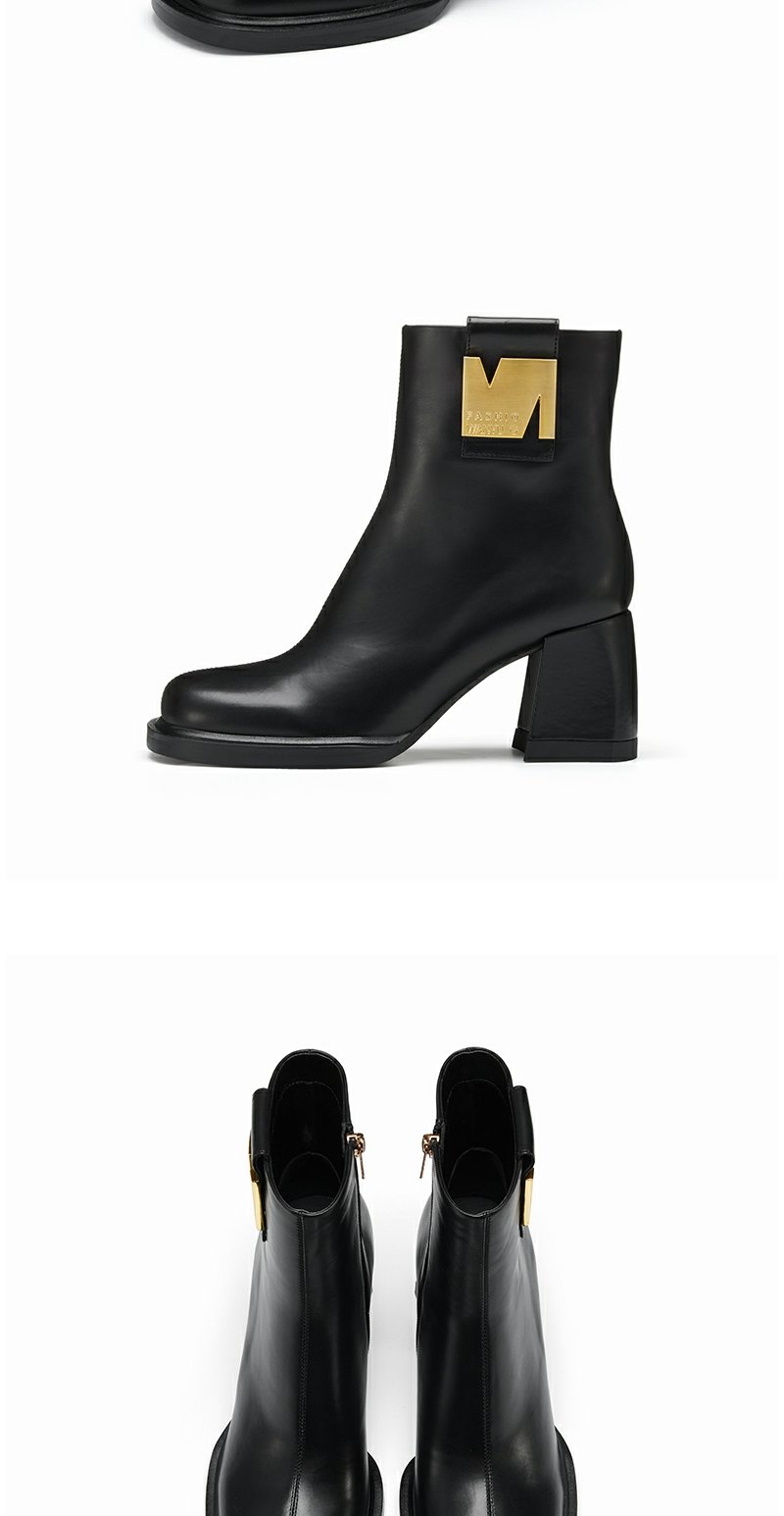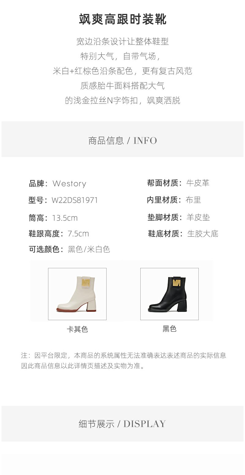 westory复古时髦金属饰扣短筒时装靴粗高跟秋冬新款靴子81971