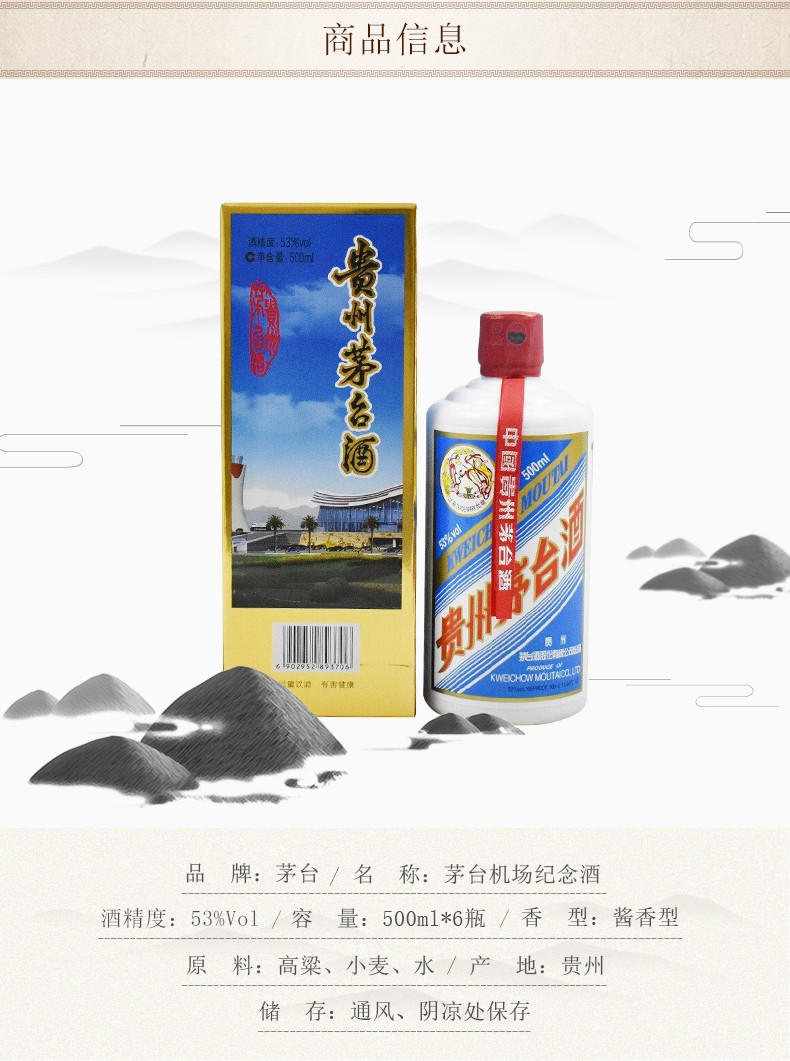 贵州茅台酒2017年遵义机场纪念酒酱香型白酒53度500ml