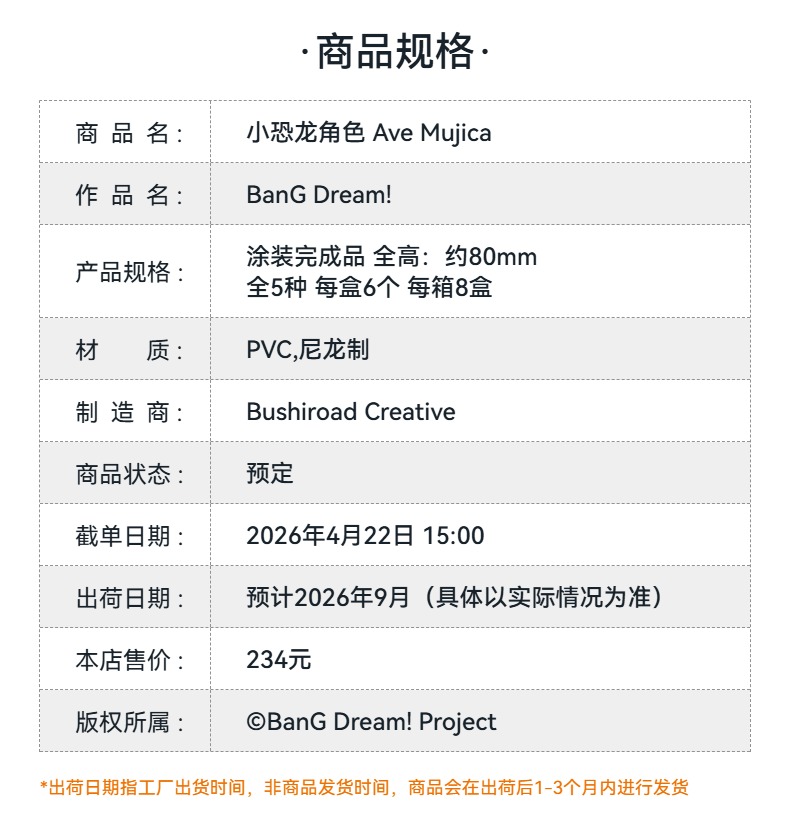 【GSC预售定金】小恐龙角色 Ave Mujica BanG Dream! 手办模玩
