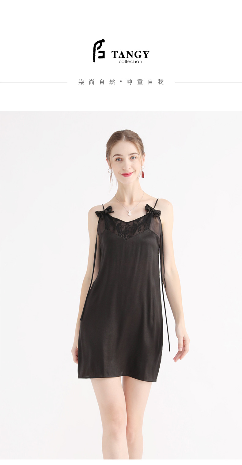 TANGY Collection/天意精品夏季新品蕾丝吊带莨绸家居服