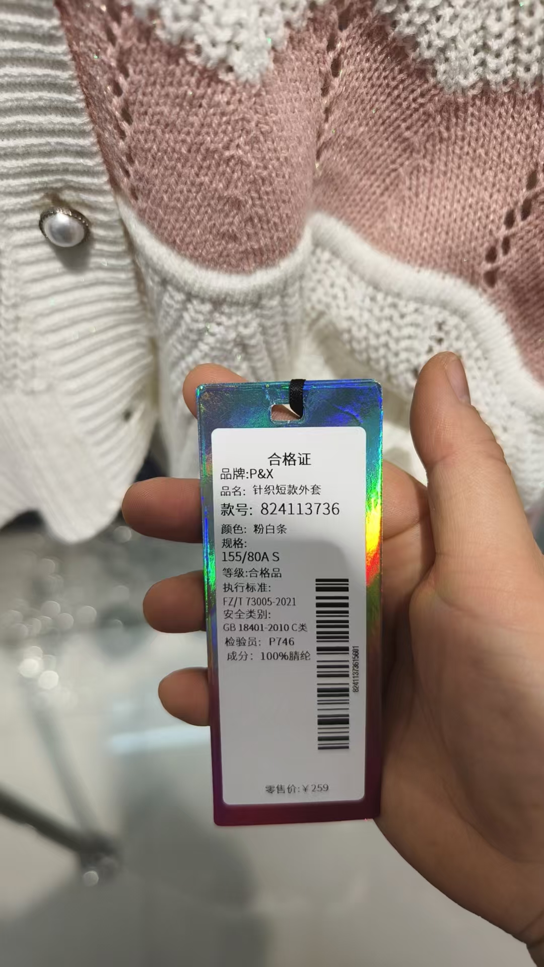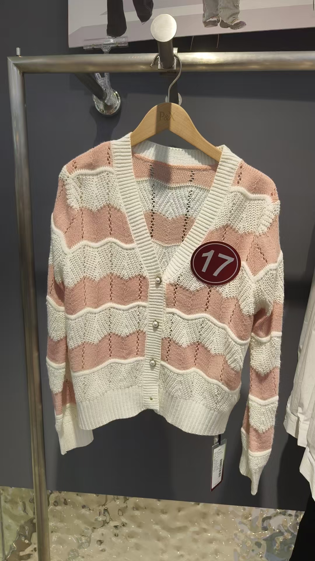 P&X设计师女装 针织短款外套 824113736 粉白条