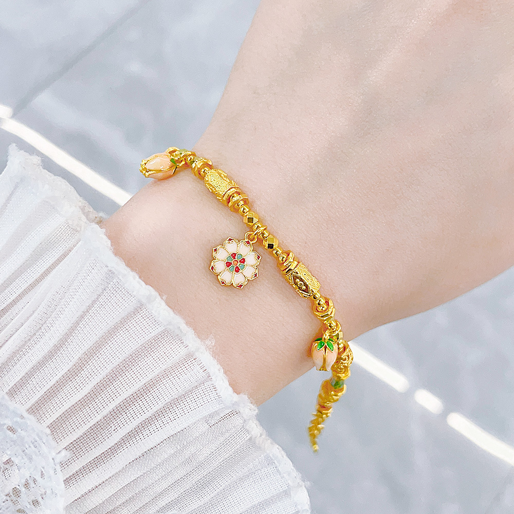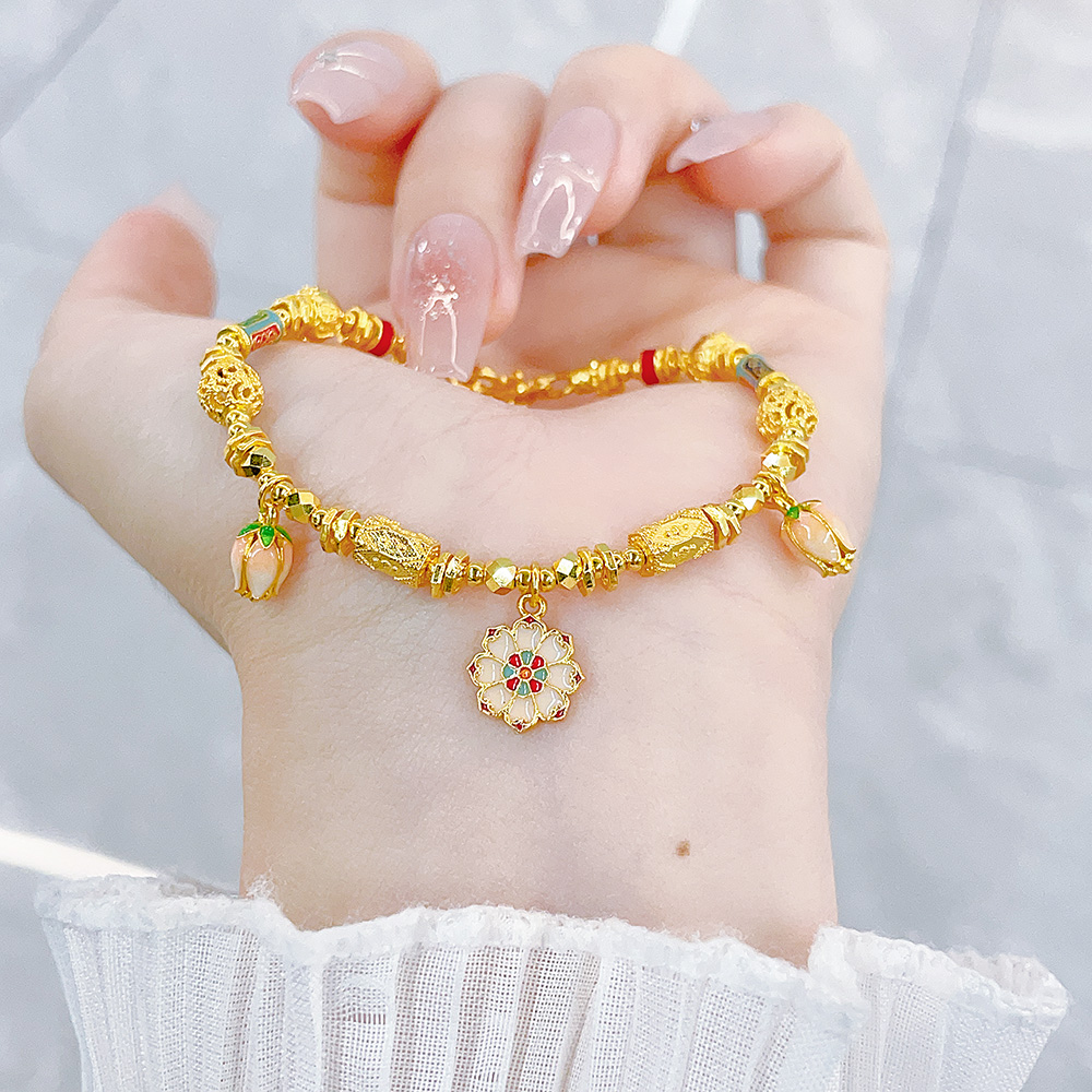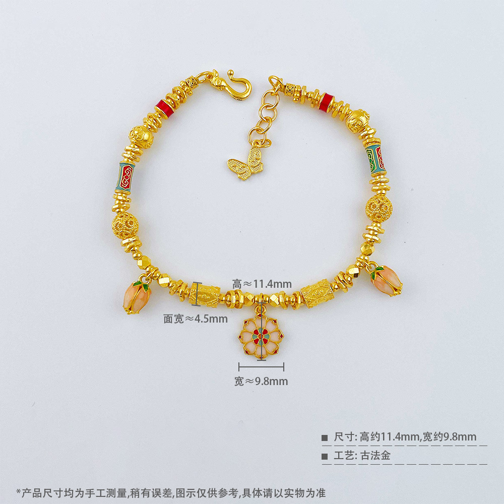 【限时克减150元】足金999 #繁华似锦 #低温珐琅 古法空心金花朵朵福运满满快乐永随珐琅手链(内里为无弹力棉线)(AEQGFSL00336)(预售产品下单后不退款不退货不换货不补差价)