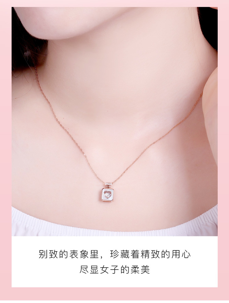 门店同款[天然]钻石世家 18K金钻石吊坠 爱随心动贝爱系列 方心白贝钻饰吊坠 心形轮廓 双车花灵动显钻 香水瓶造型 精致优雅 时尚礼品 门店同款