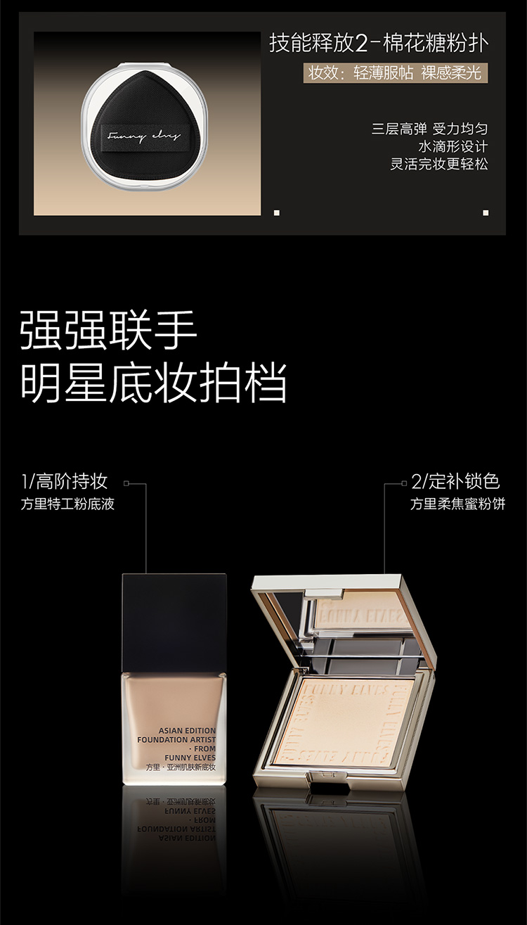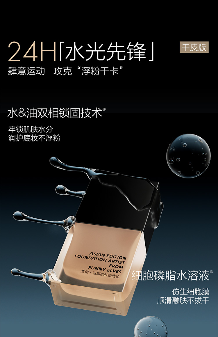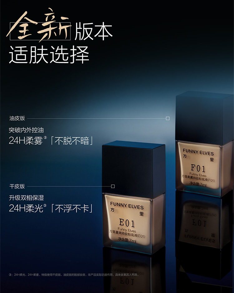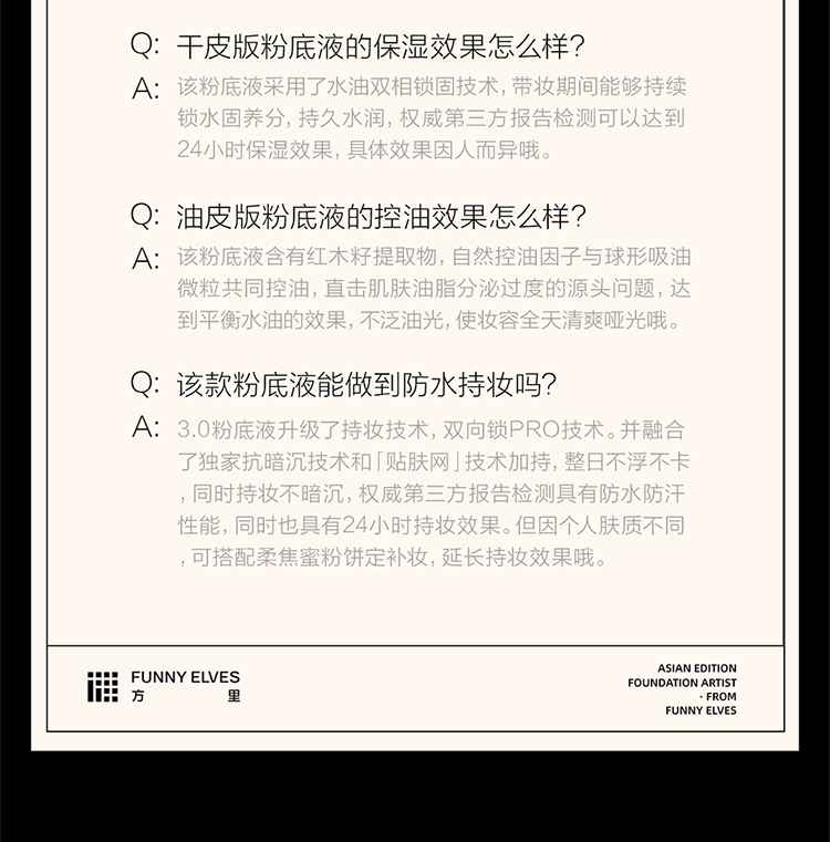 Funnyelves方里特工粉底液盈润/柔雾轻薄持妆粉底液7ml干皮混油皮3.0版本持久不脱妆