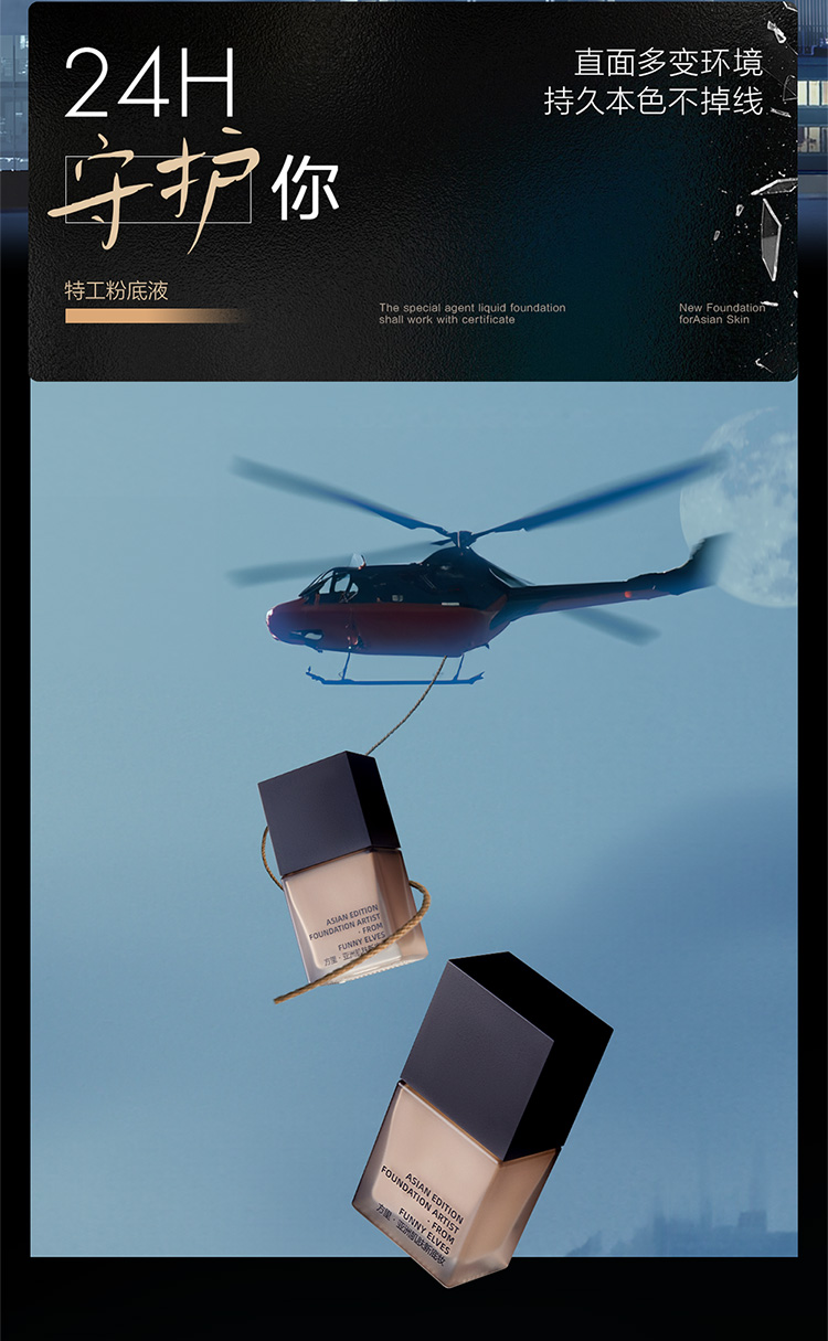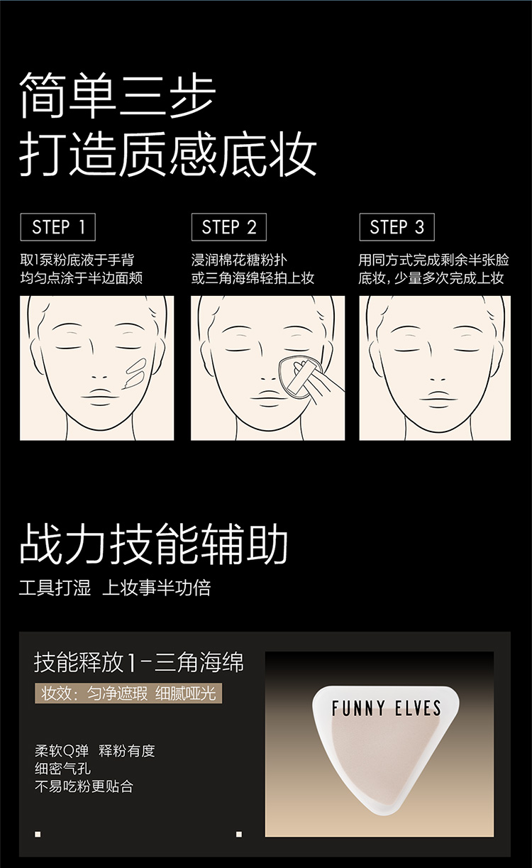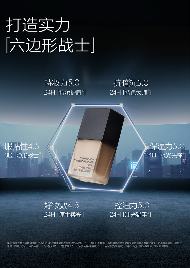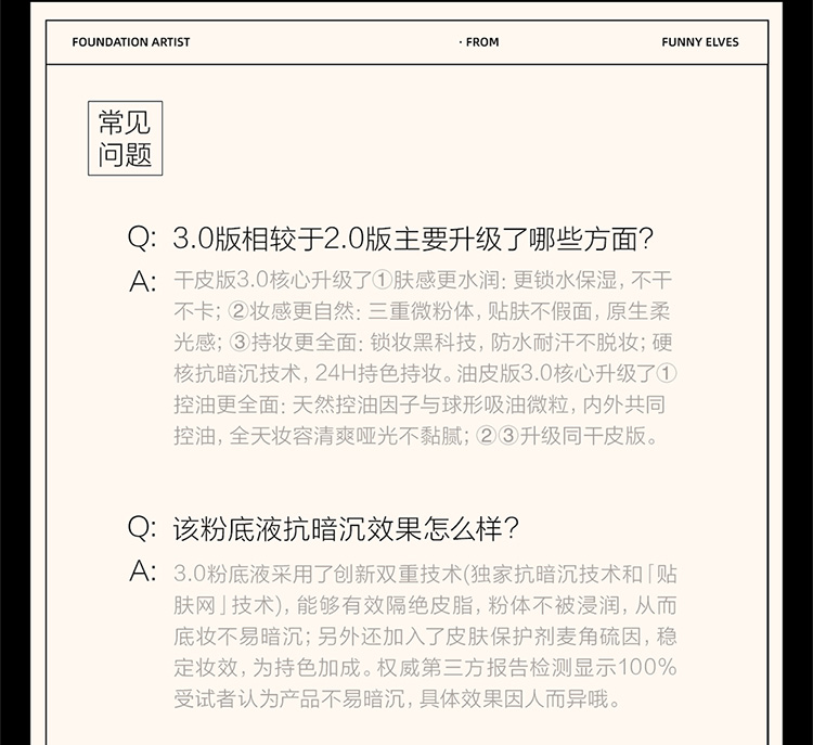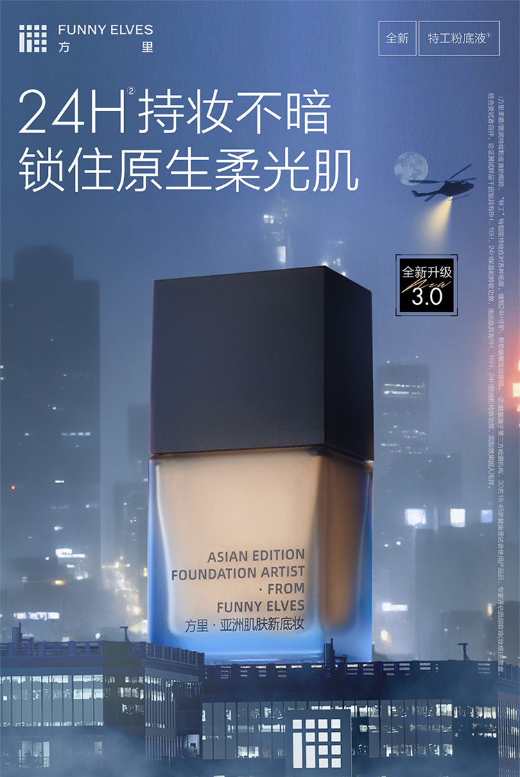 Funnyelves方里特工粉底液盈润/柔雾轻薄持妆粉底液7ml干皮混油皮3.0版本持久不脱妆