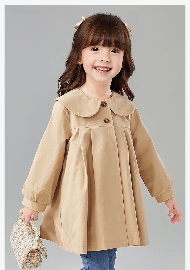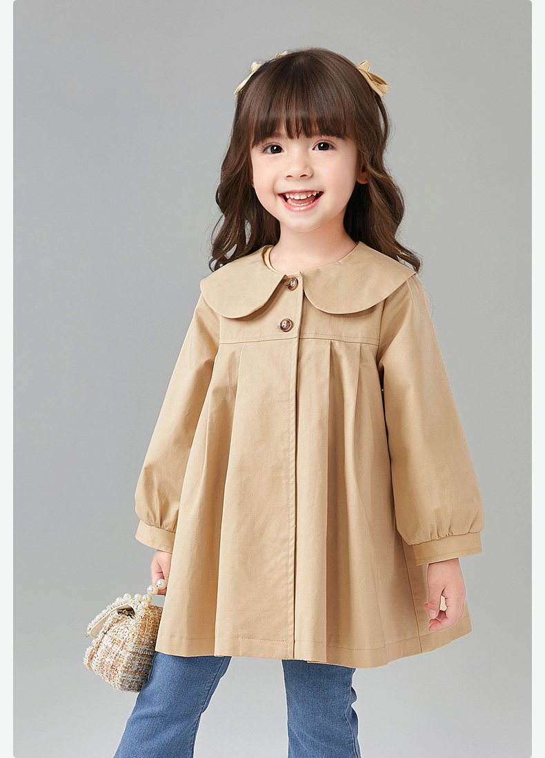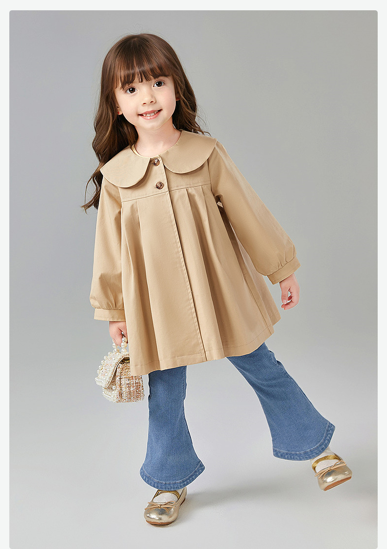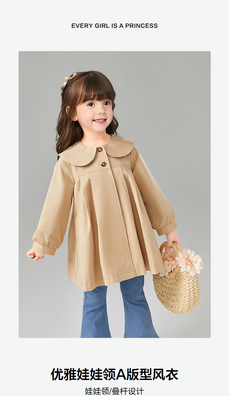 笛莎Deesha 童装女童外套2025春新款优雅娃娃领A版型风衣