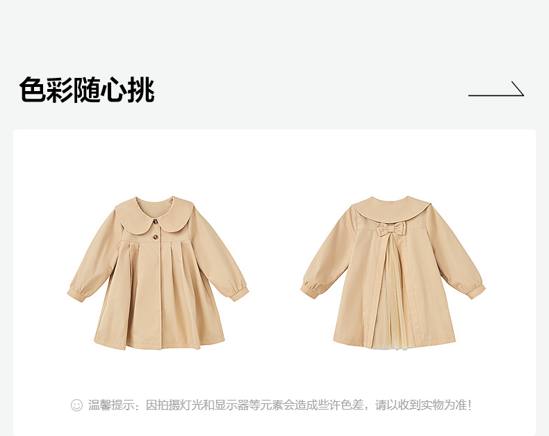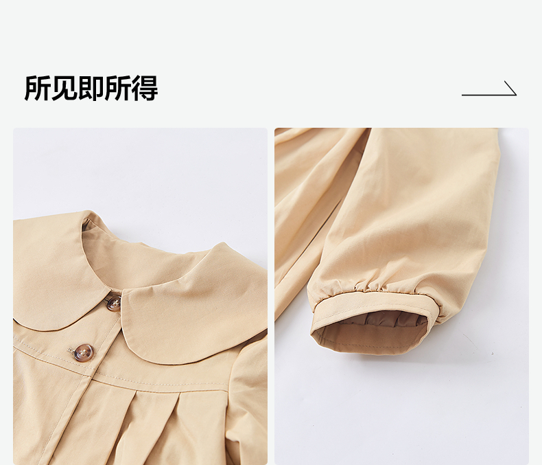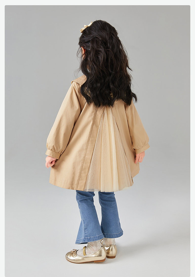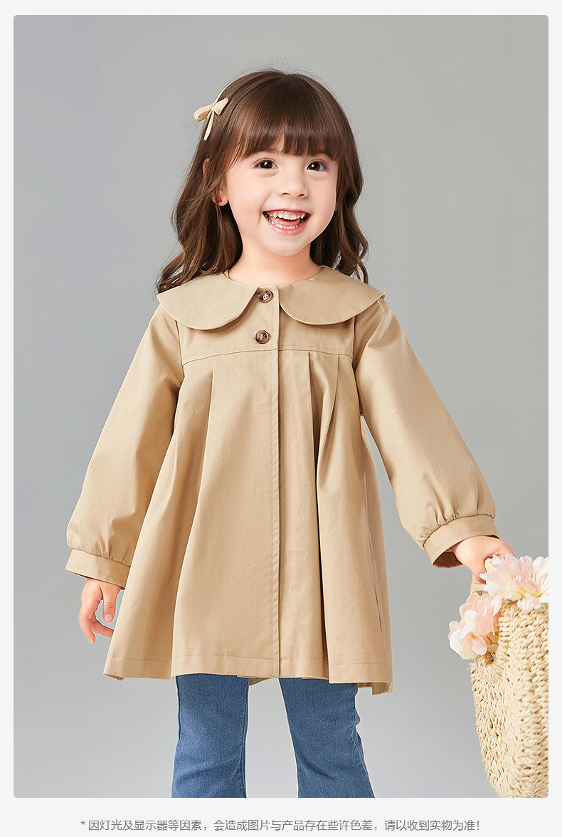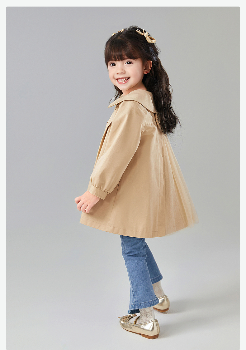 笛莎Deesha 童装女童外套2025春新款优雅娃娃领A版型风衣