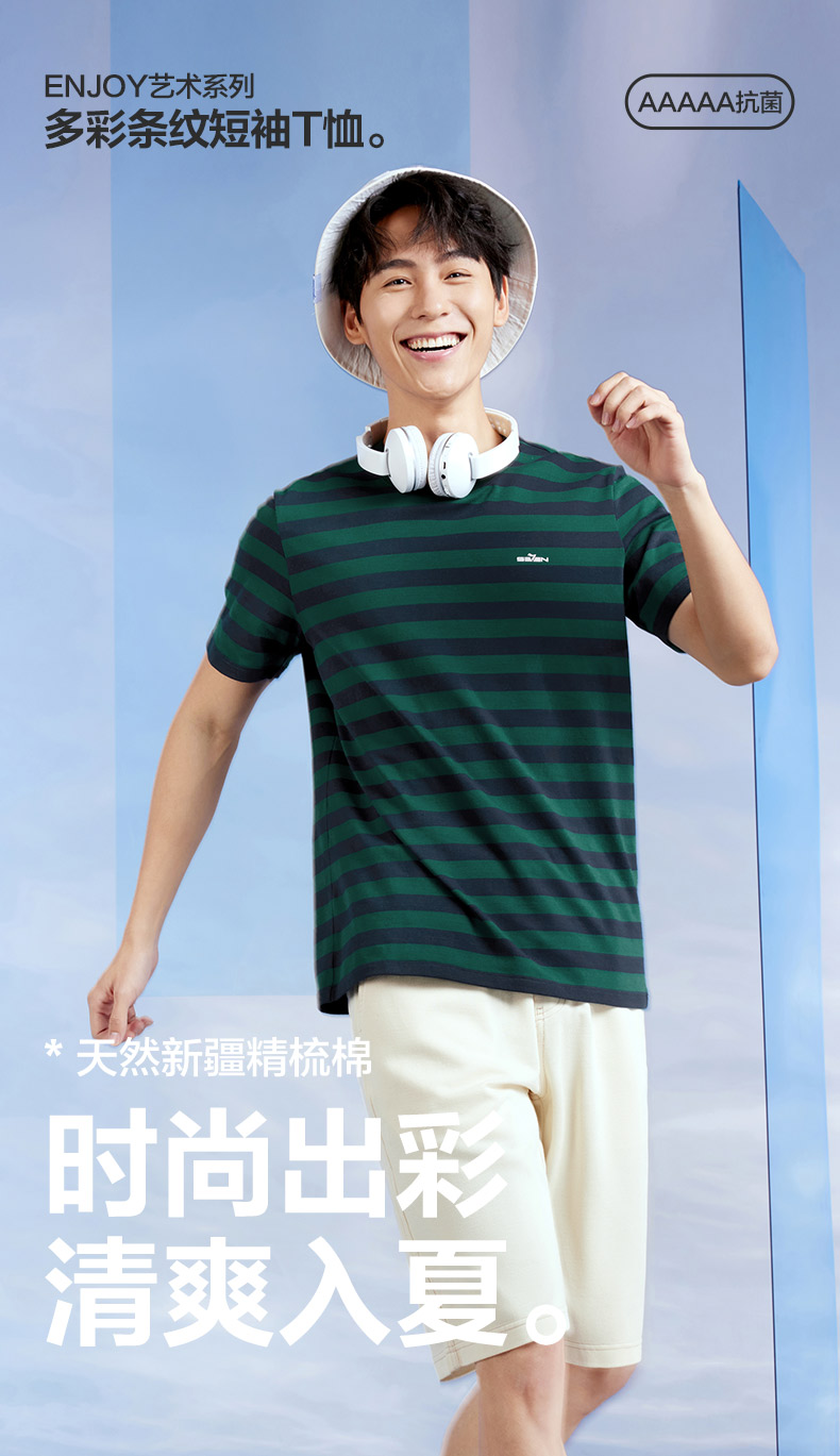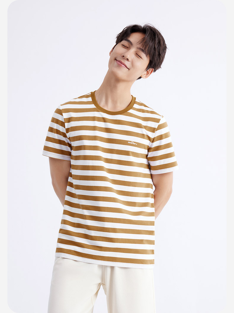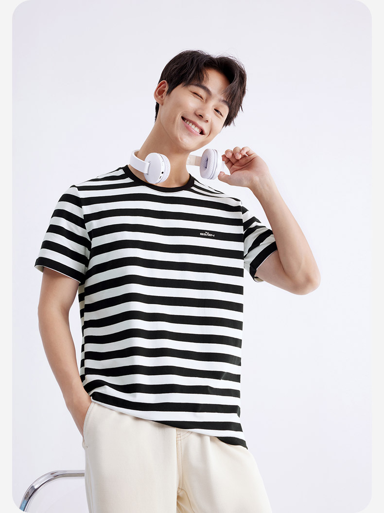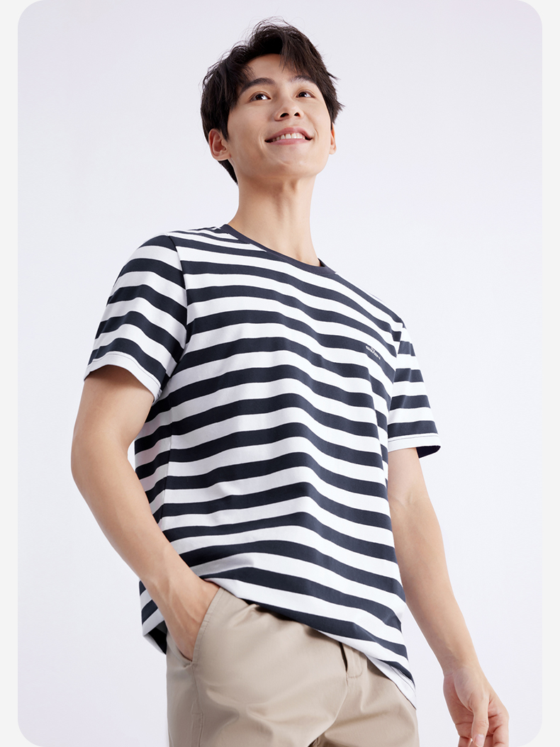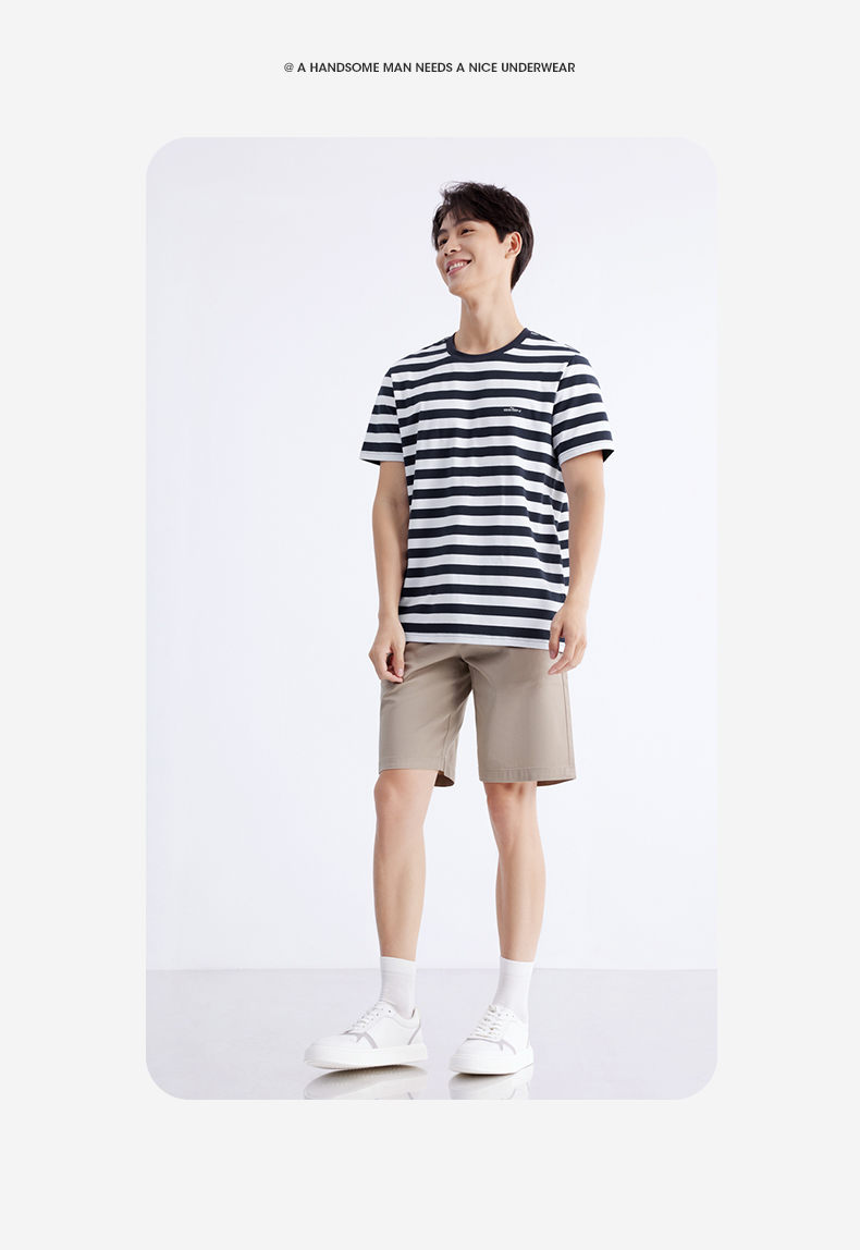 柒牌男装条纹短袖T恤2024夏季新款时尚休闲轻薄舒适撞色圆领内衣 126F70070