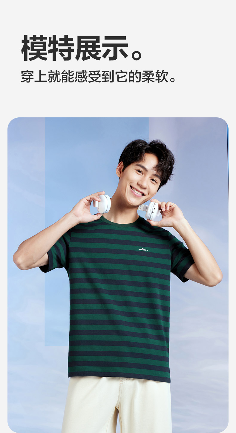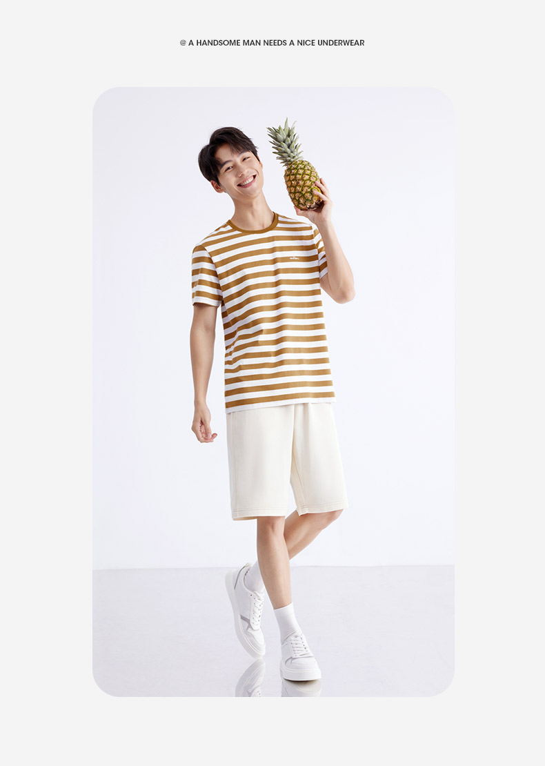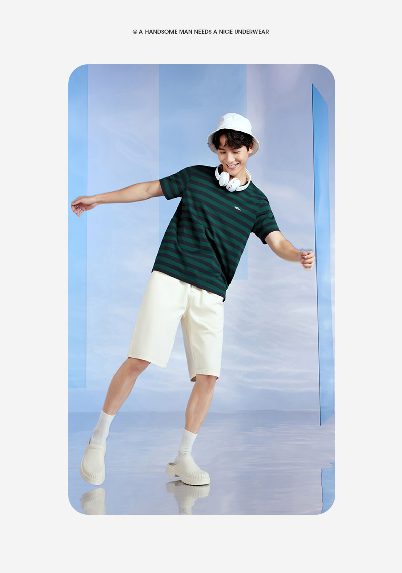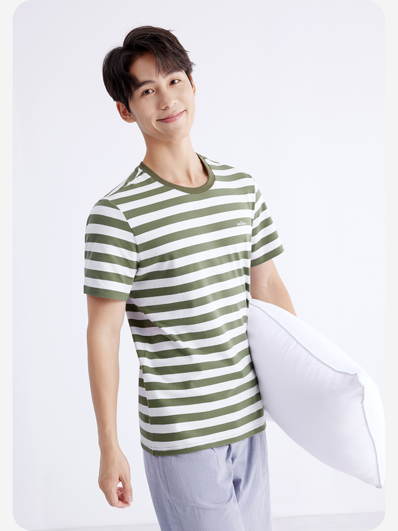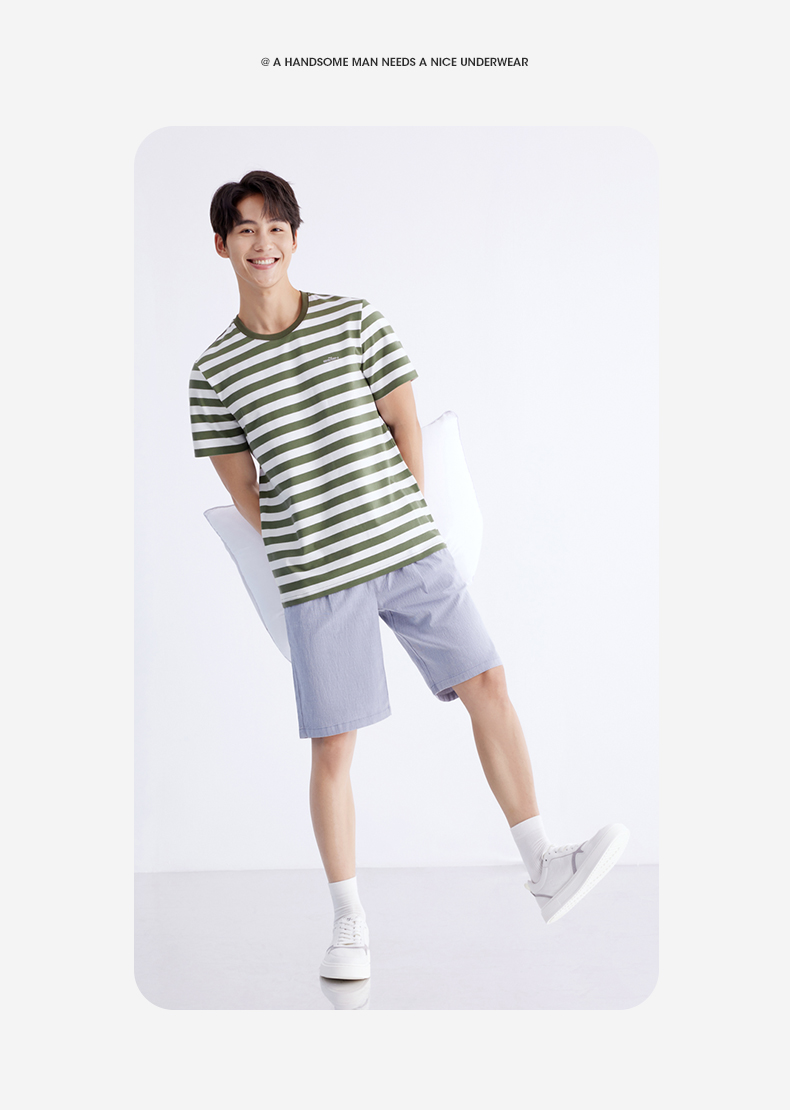 柒牌男装条纹短袖T恤2024夏季新款时尚休闲轻薄舒适撞色圆领内衣 126F70070