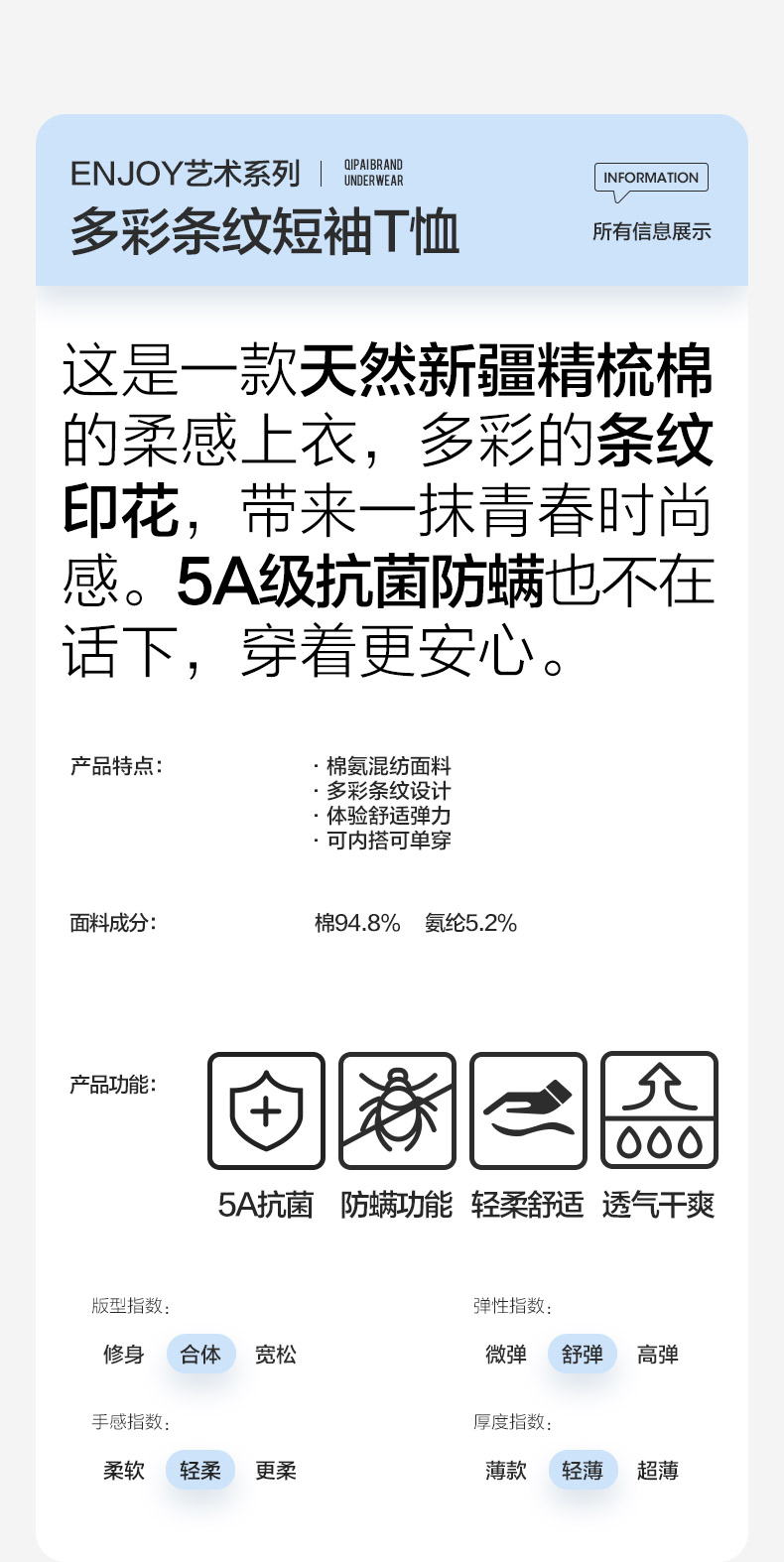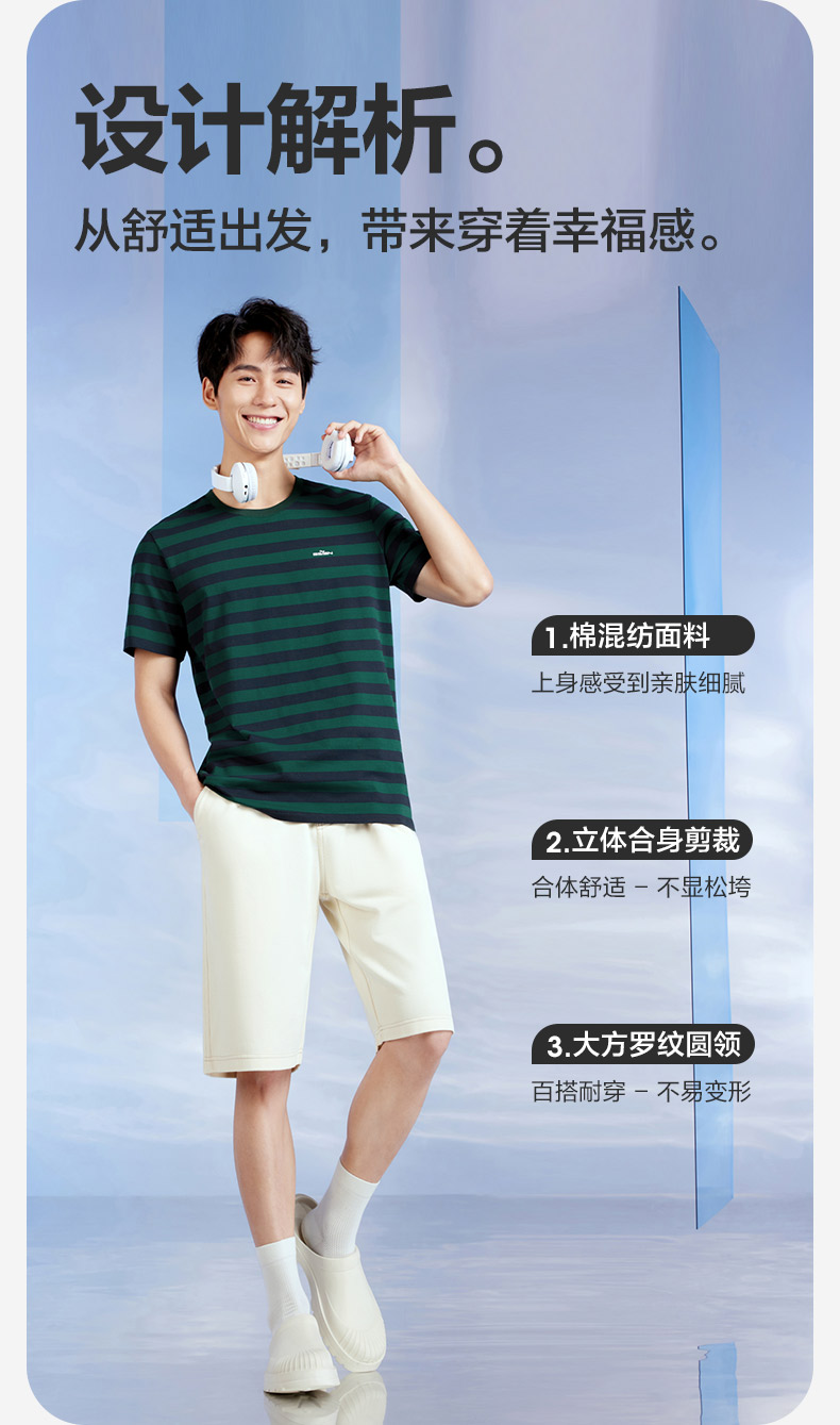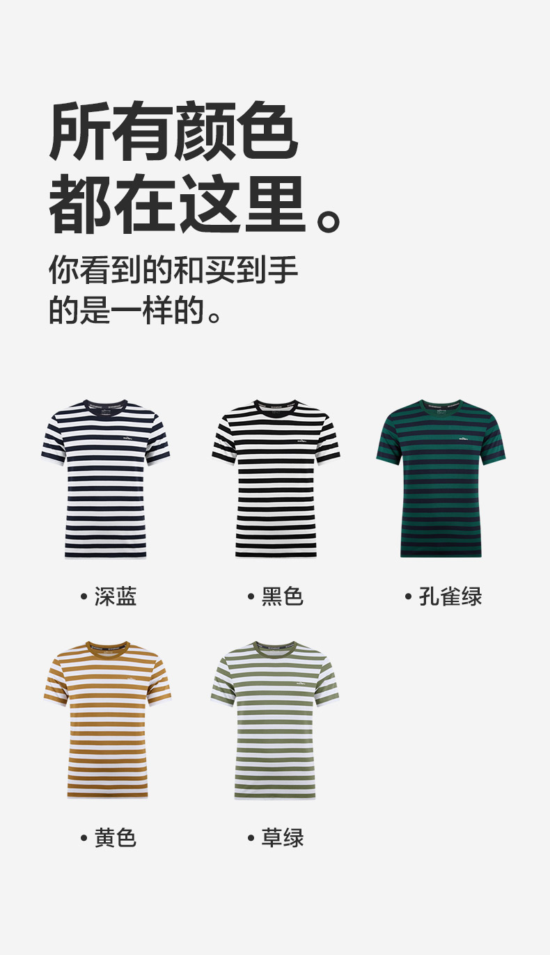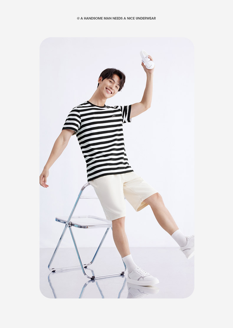 柒牌男装条纹短袖T恤2024夏季新款时尚休闲轻薄舒适撞色圆领内衣 126F70070
