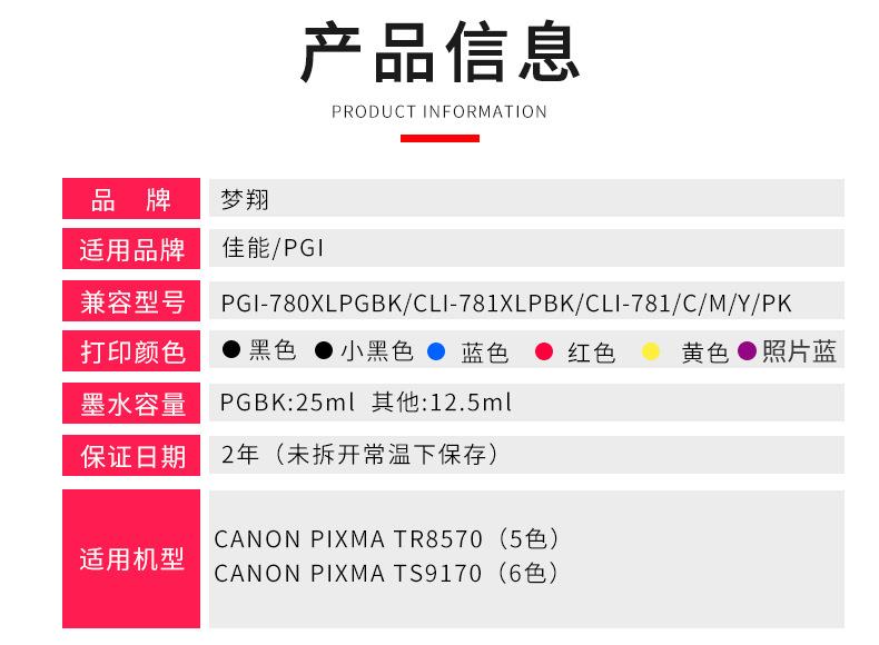 梦翔适用佳能PGI780 CLI781XL TR8570 TS9170 TS8170打印机墨盒