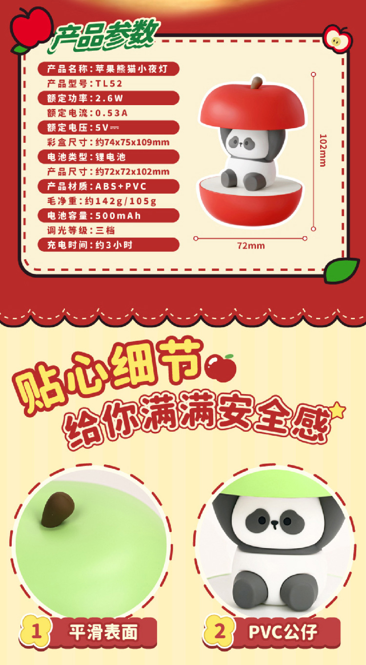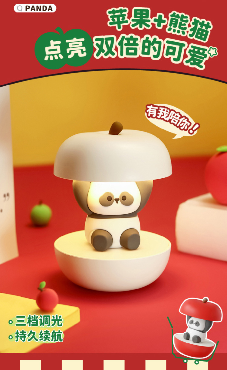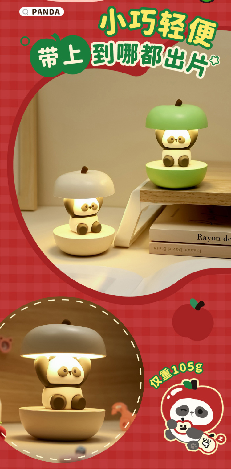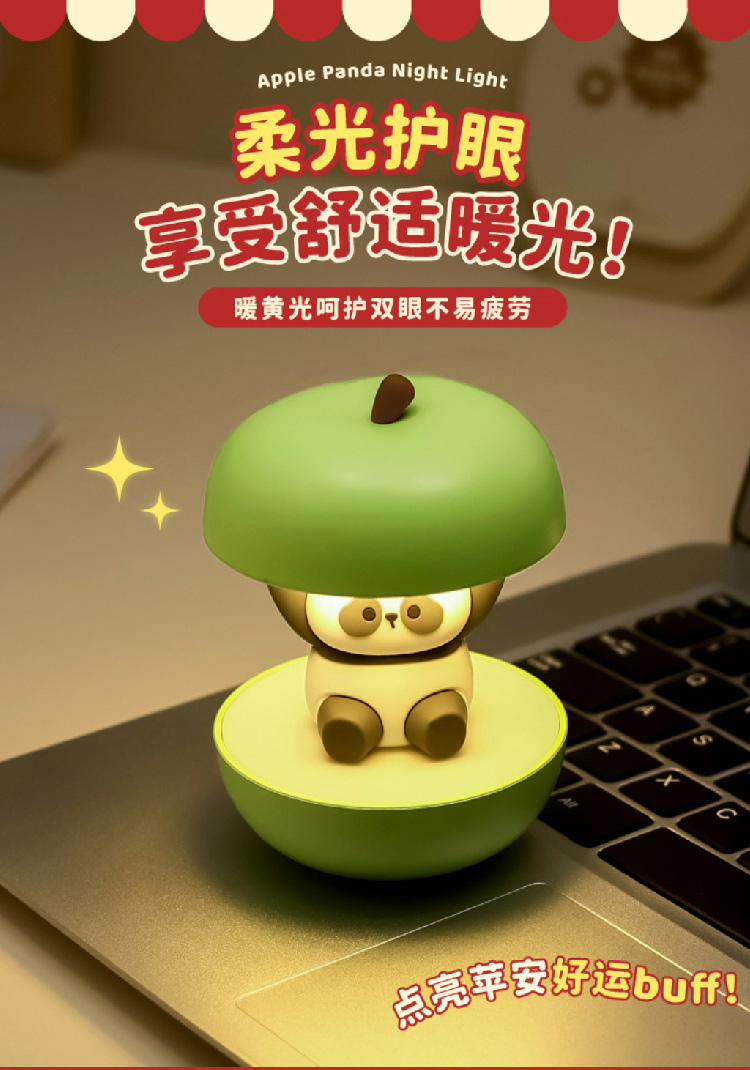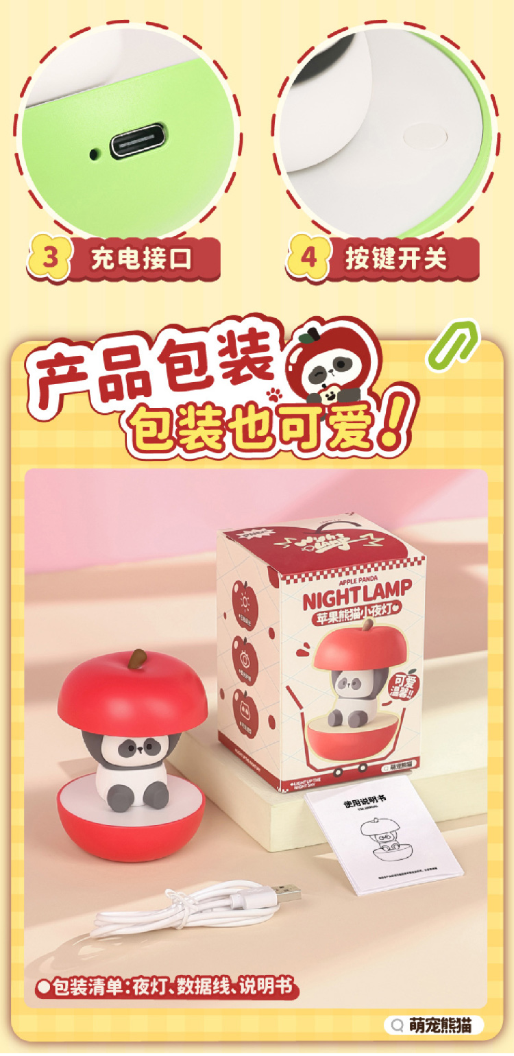 【圣诞礼物】新款圣诞春节平安喜乐小夜灯 充电可爱熊猫护眼卧室睡眠灯氛围灯