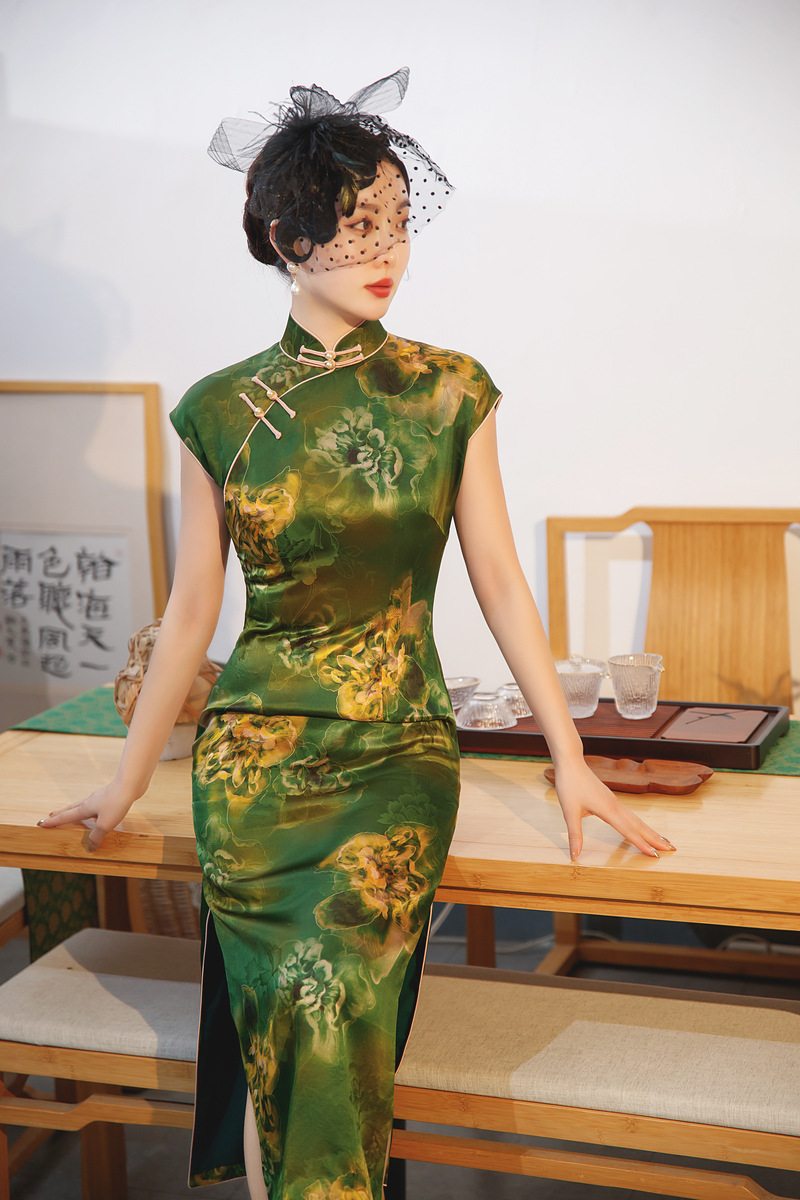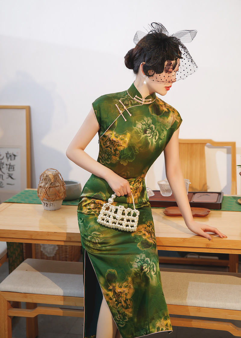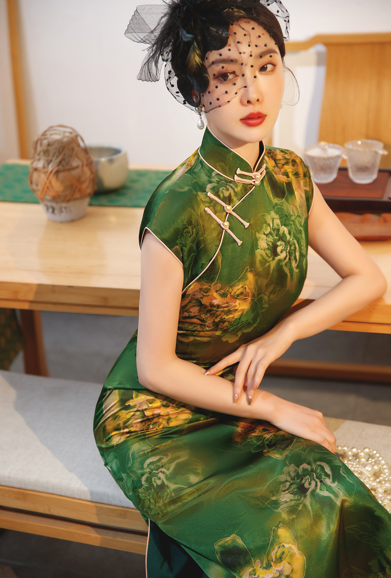中式复古,桑蚕丝国风真丝旗袍MY8502