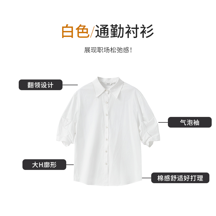 【商场同款】CNB5495 “白色中袖衬衫 ” 去班味衬衫,展现职场松弛感 微微光泽有质感