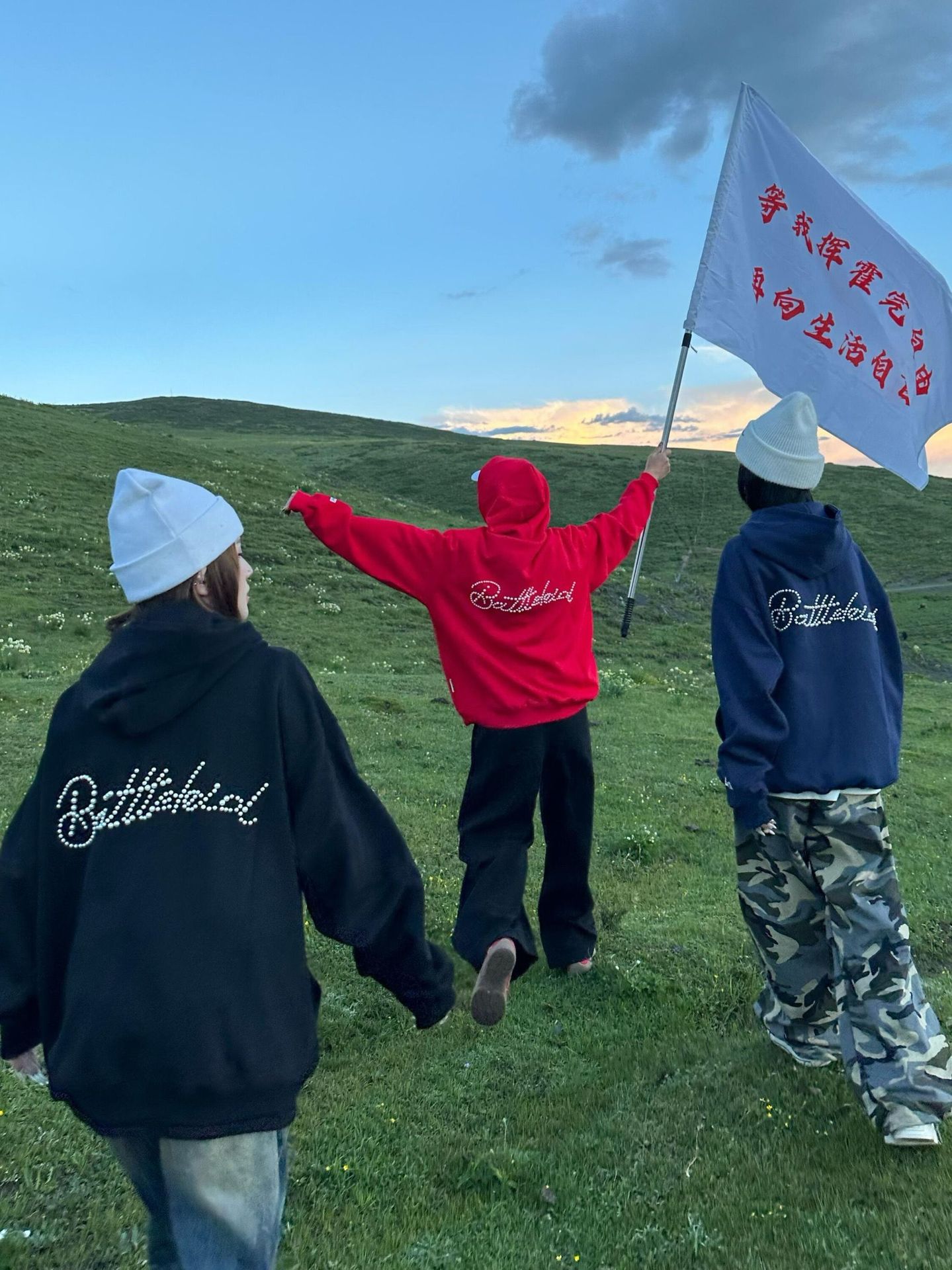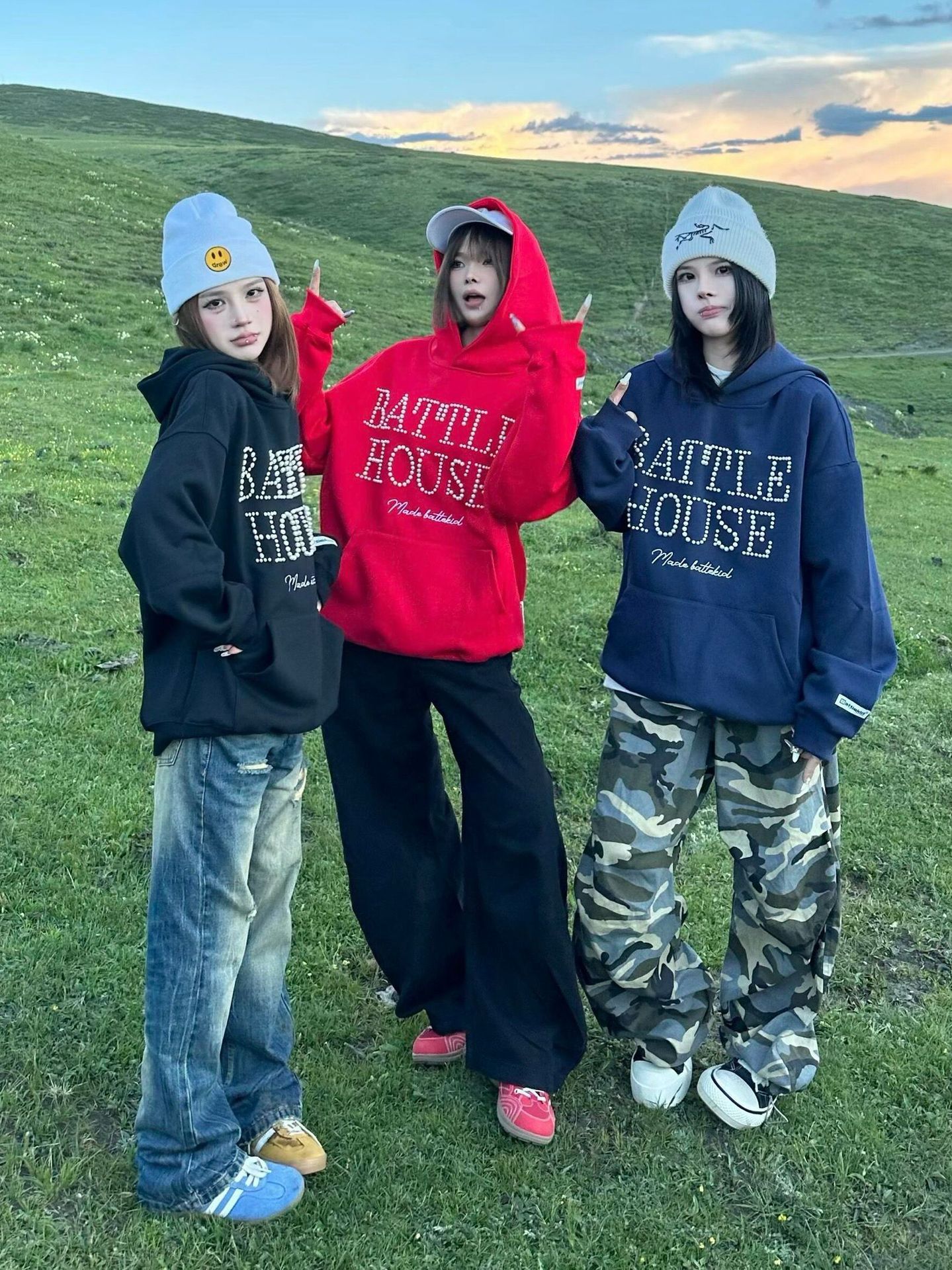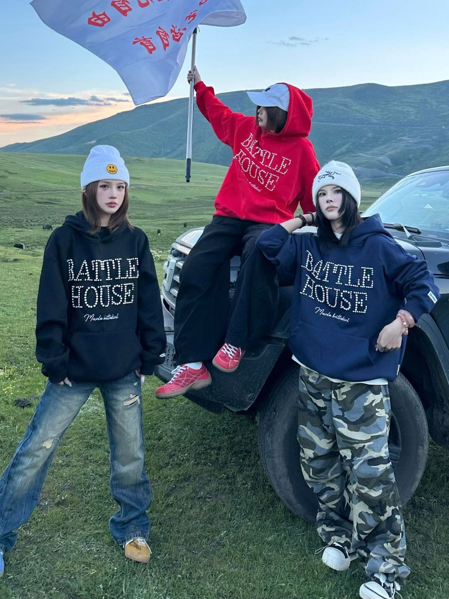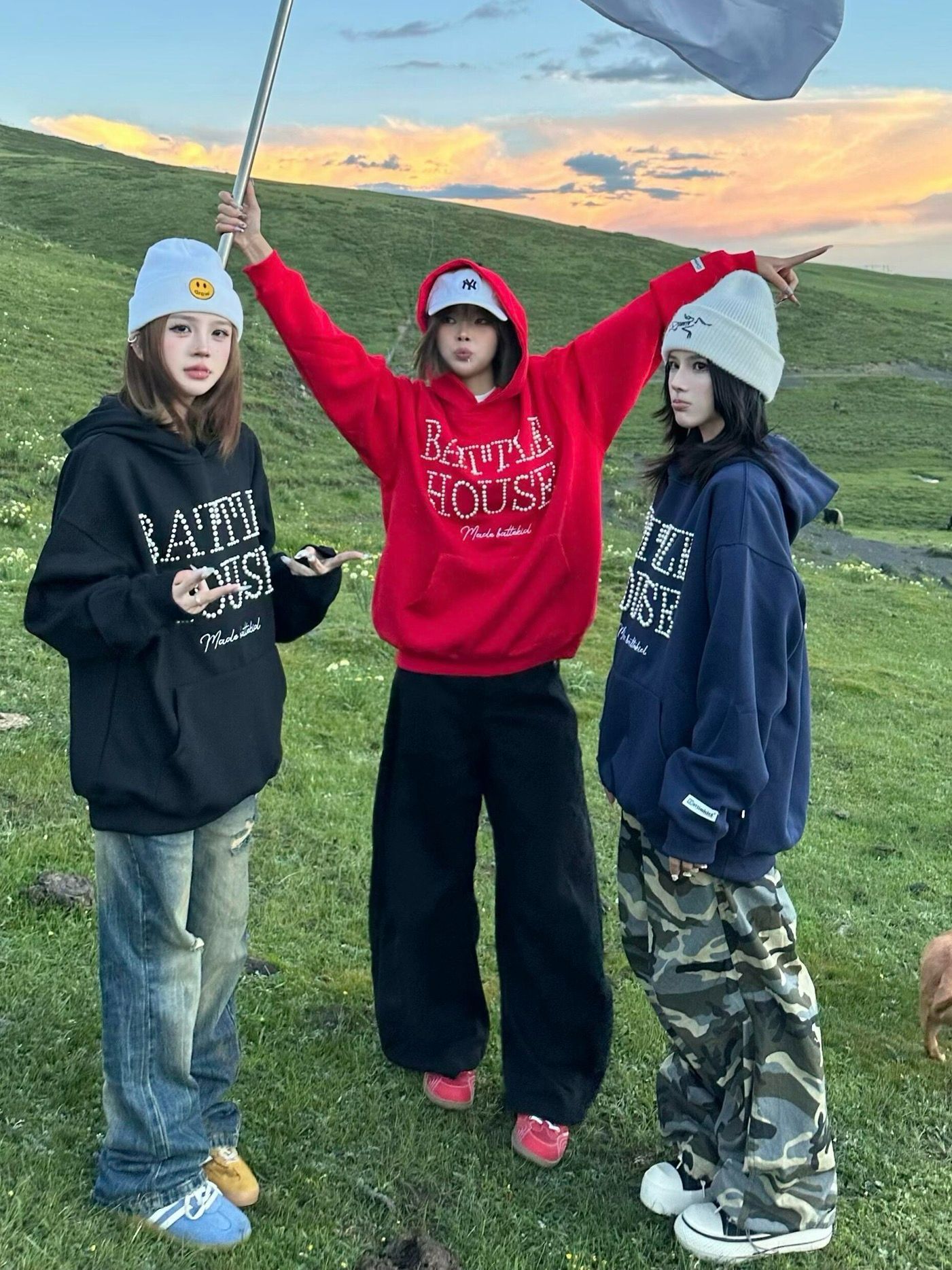 【美式高街钉珠字母连帽卫衣】春款新款 加绒加厚宽松情侣装上衣外套