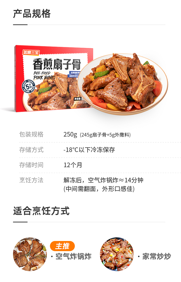 【不支持无理由退货】如意三宝 香煎扇子骨 250g*6