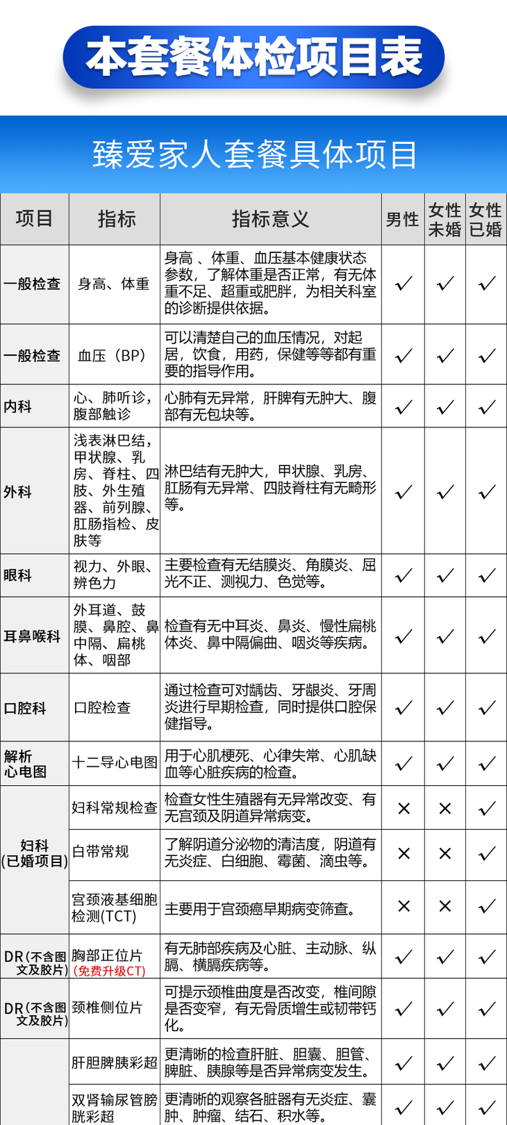 【臻爱家人】美年大健康,全身体检包含胸部颈椎DR(免费升级胸部CT)、心功能、7项癌症筛查、宫颈癌TCT等