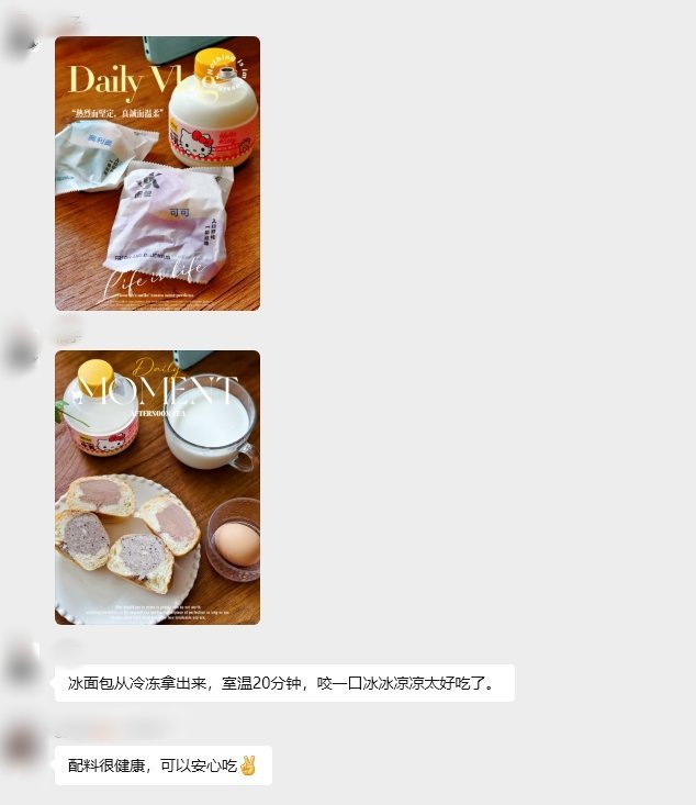 ❄️冷冻后的面包体软得像在云端打滚,内馅爆浆 —— 咬一口,面包体软、内馅凉凉丝丝的甜蜜涌出来,燥热和坏情绪都被冲走啦~”