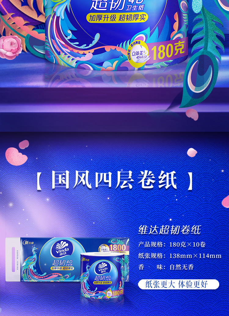 【加厚升级❗️超韧厚实】维达卷纸180g有芯超韧just1卷纸空心纸巾印花卷筒纸卫生纸厕纸巾。ya