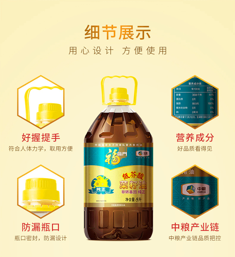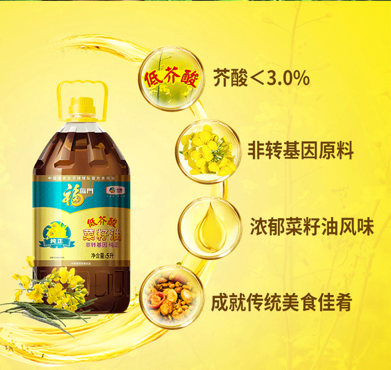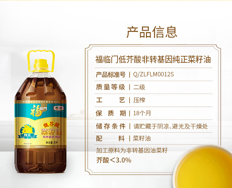 中粮福临门非转基因纯正低芥酸菜籽油5L