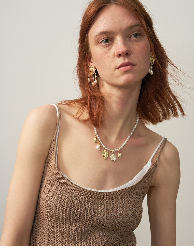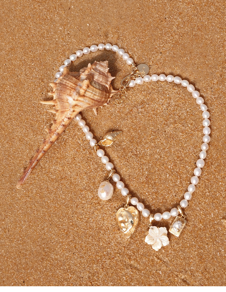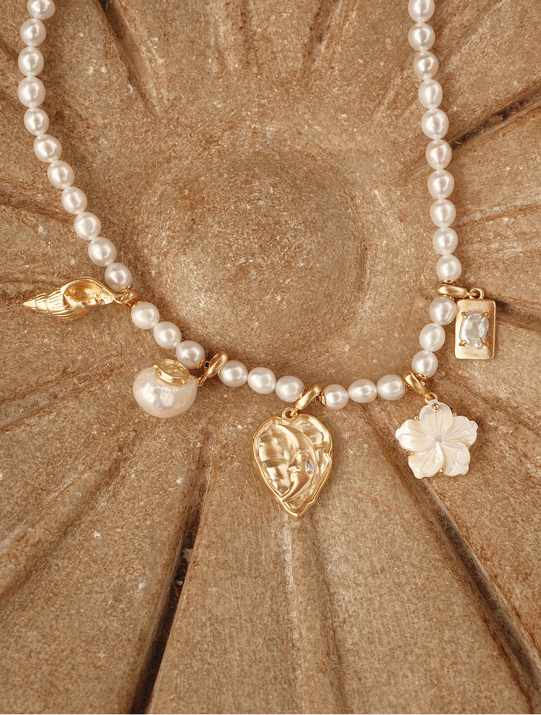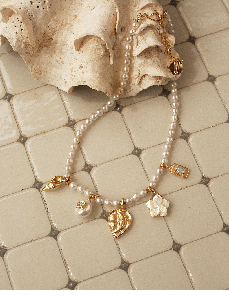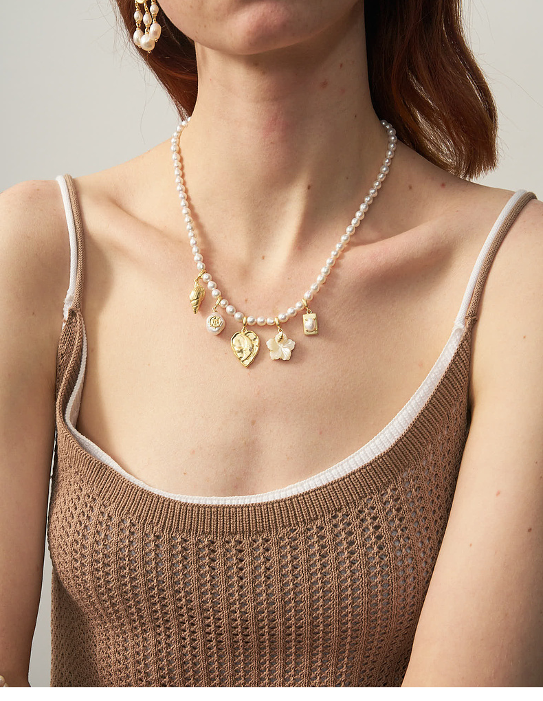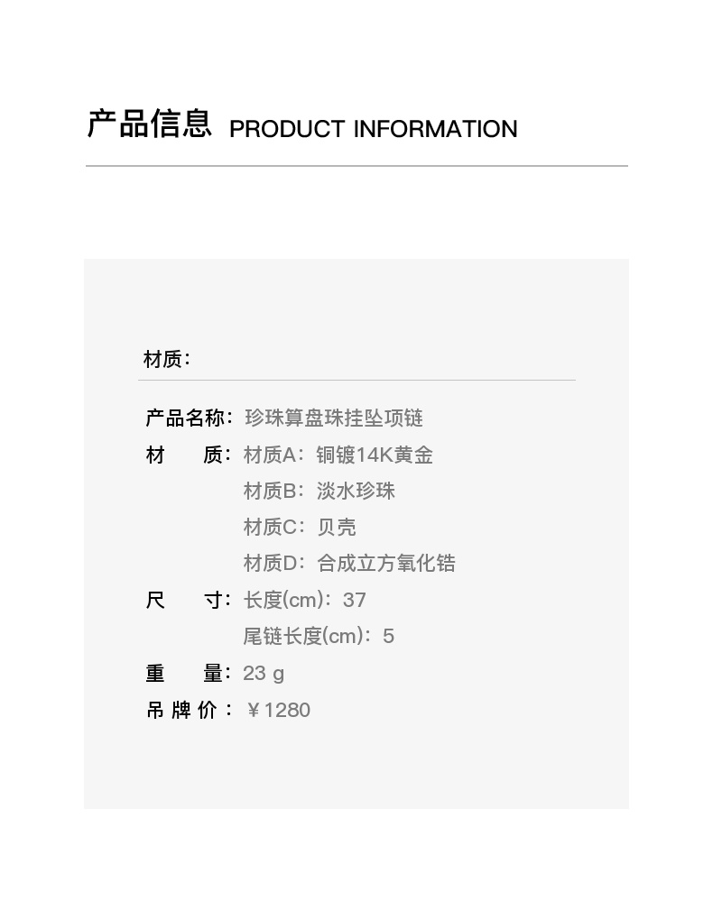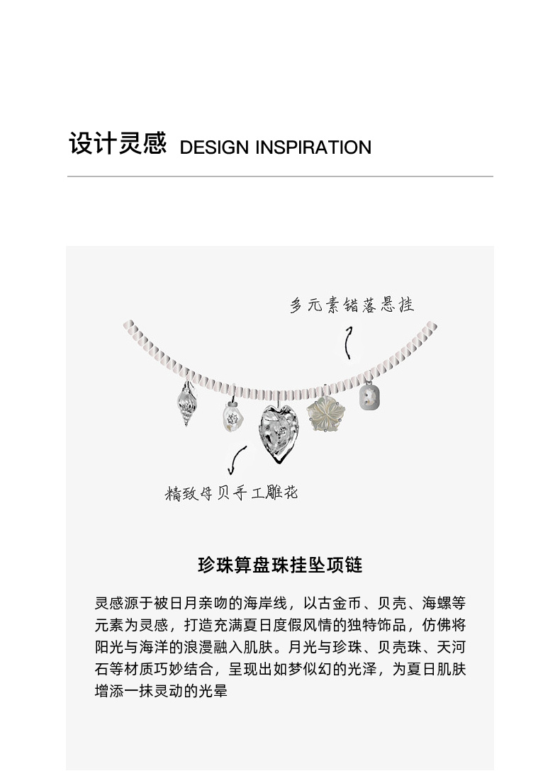 lost in echo2025夏季新款度假高级手工雕花算盘度假挂坠珍珠项链
