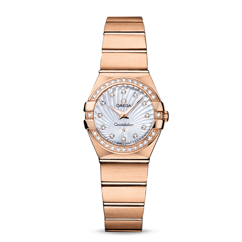 镜面材质 | 蓝宝石水晶玻璃 | 表盘 | 银白色表盘 18K红金表殼配備飾 有鑲鑽的表圈 镶钻时标 |