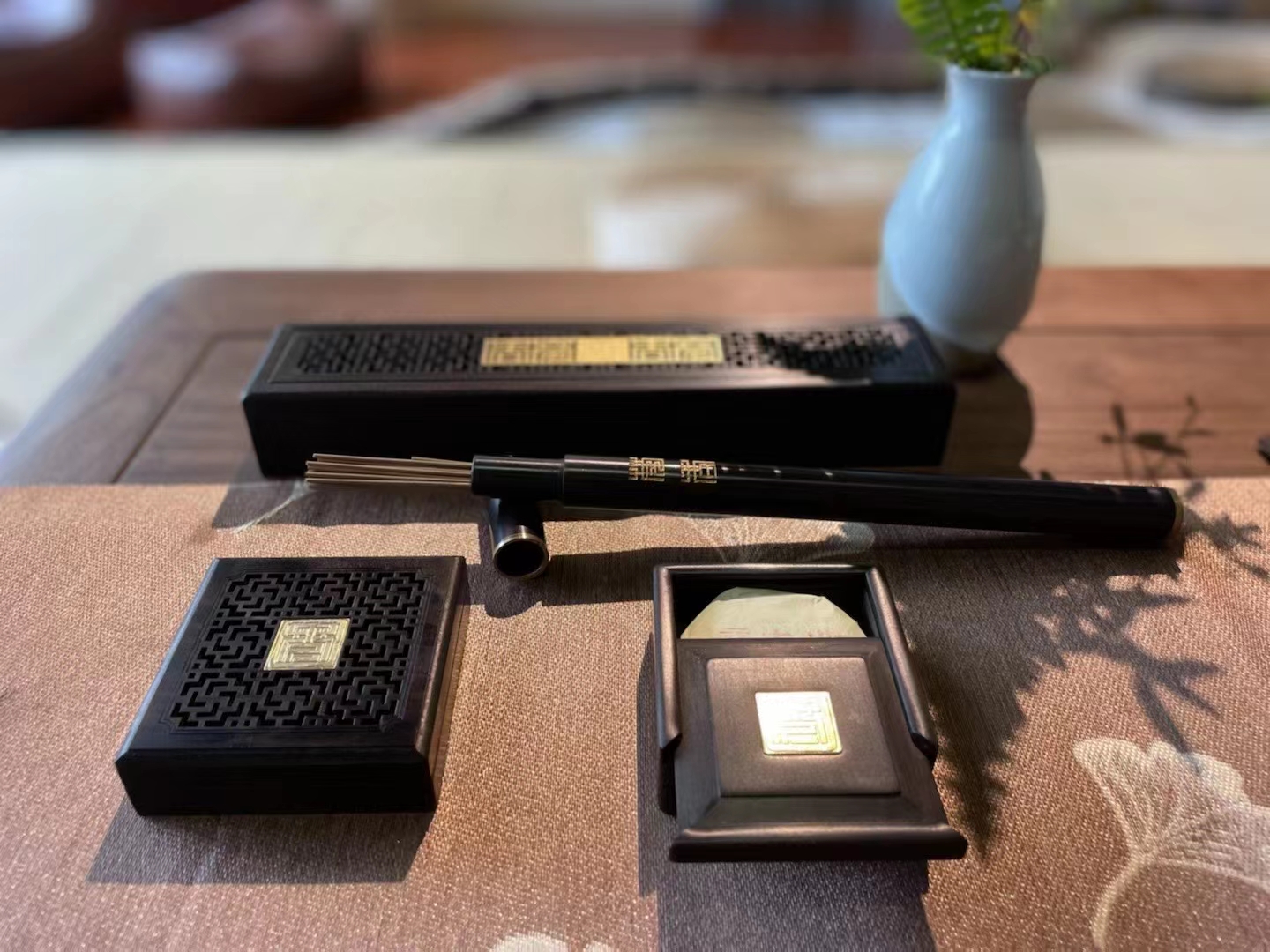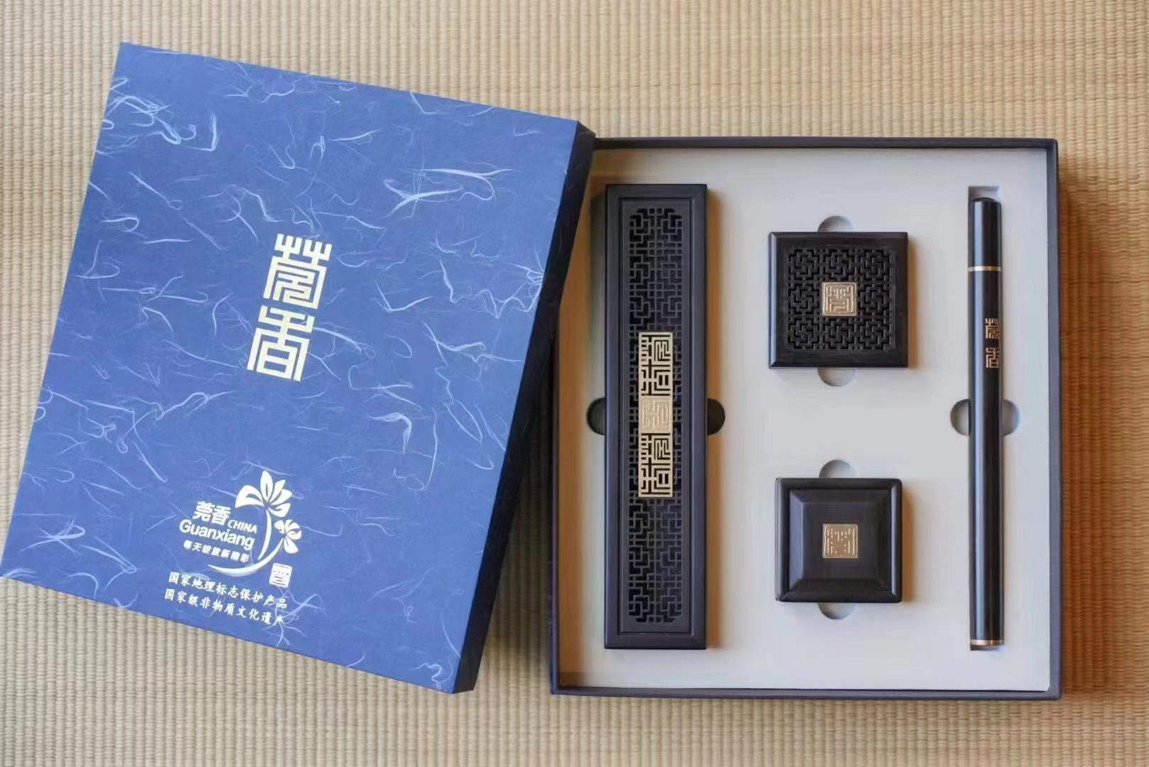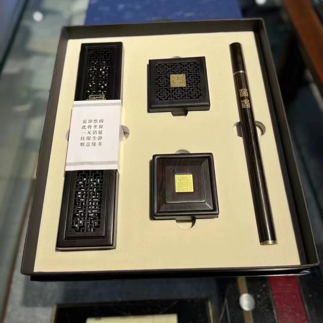黑檀木嵌铜莞香礼盒四件套 莞香手信 广东手礼
