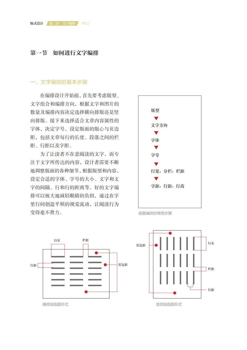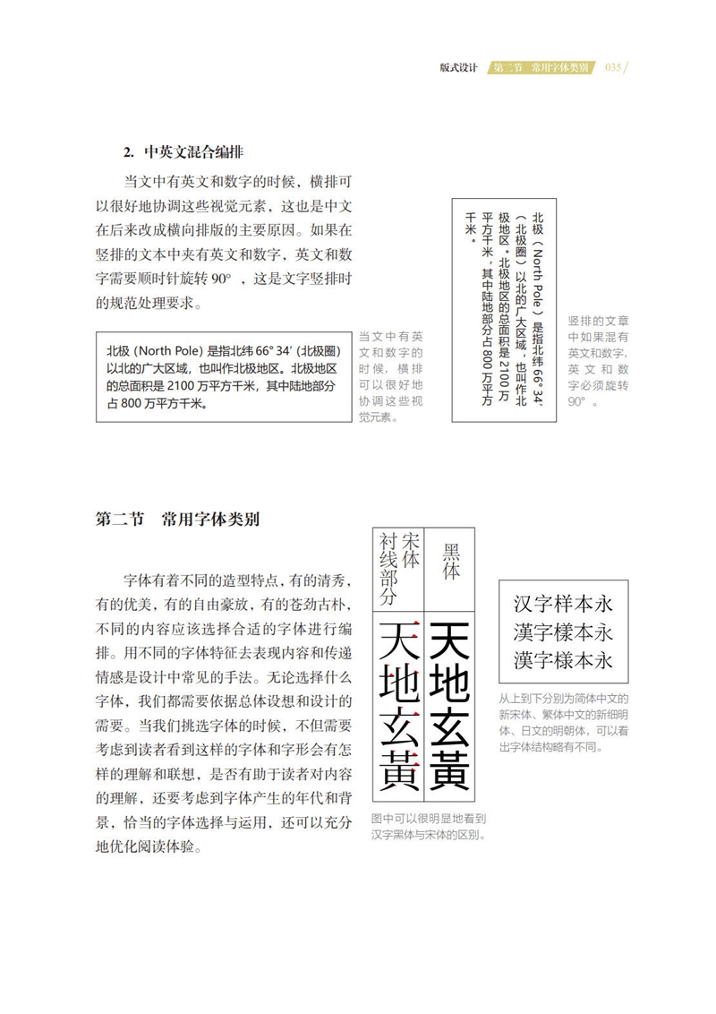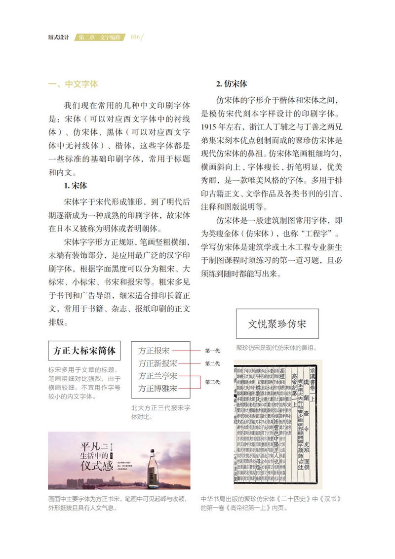 · 与国内同类教材相比,更突出文字在版式设计中的重要性,并首次加入有关西文字体编排的理论知识,包括西文字体发展的时间轴线、不同的字体与字号大小的特点展示以及实际应用,以供学生查阅参考。