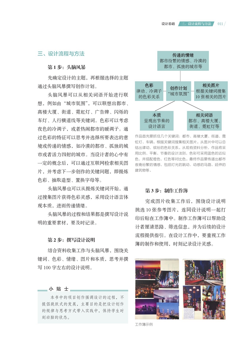 书中项目内容重在训练思维,略去了烦冗深奥的理论,便于初学者上手,项目的编排也非常适合大中专院校的设计教学课时设置,本书适用于应用型艺术设计专业学生的学习,也适合艺术教育学生使用,以了解基本的设计,同时也为也为有志于赴国外学习设计的学生提供参考。