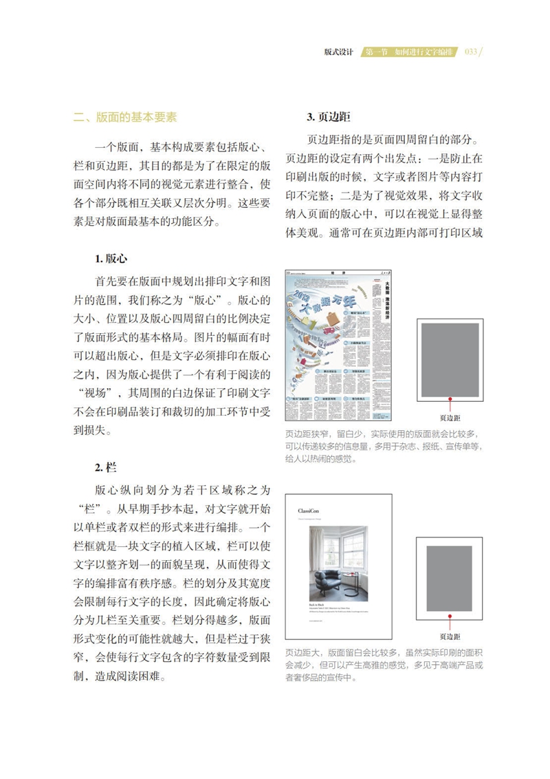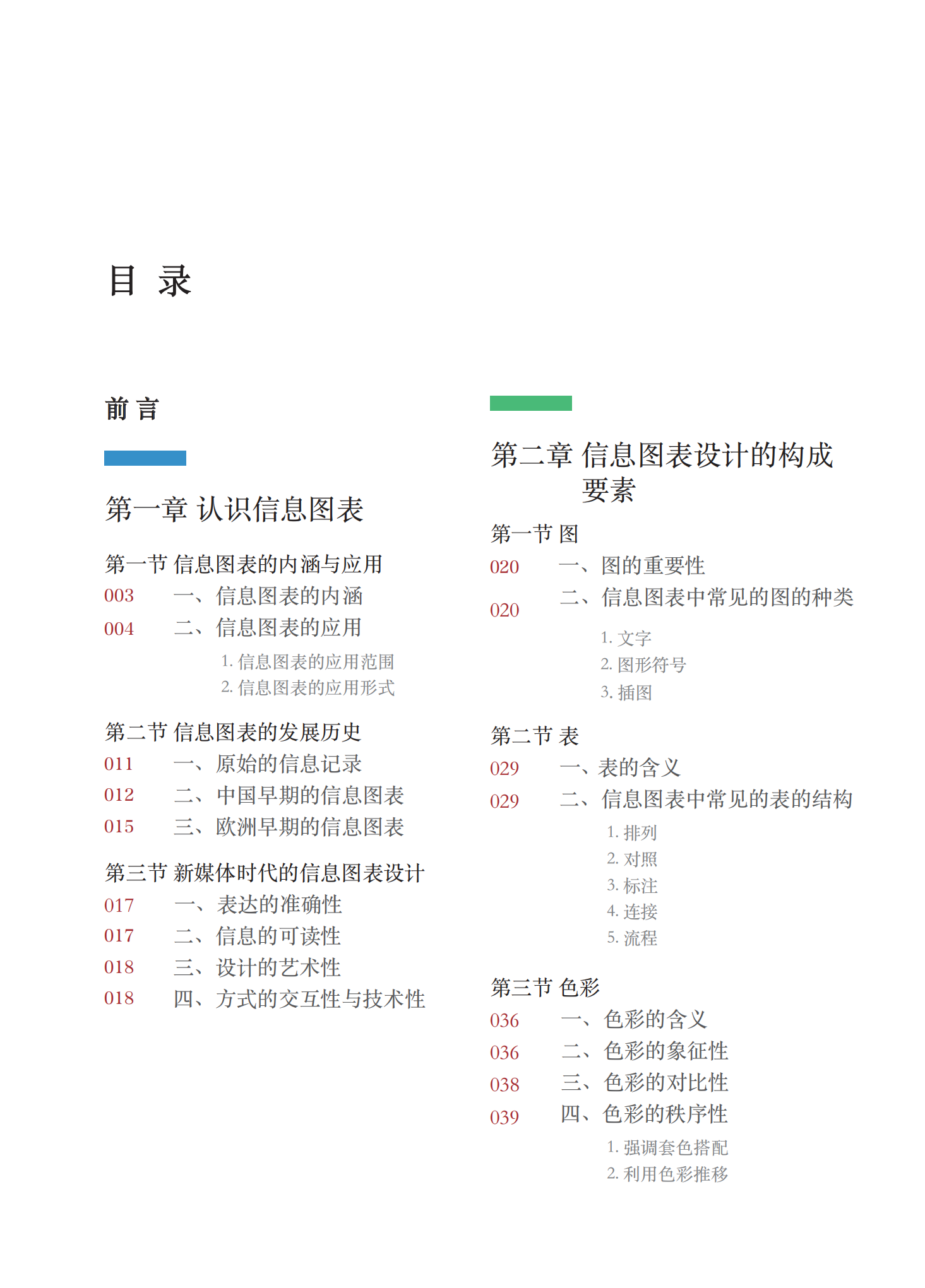 全书分为六个章节:通过引入版式的作用与历史形态发展,让学生对版式设计的历史形态有整体的认知,对初学者的改良创新有所帮助;通过色彩编排与图片编排的讲解,让学生了解版式设计的基本元素特征及其编排使用技巧;通过文字编排、网格编排和自由版式编排的方法传授,让学生切入三种不同类型的版式设计的实践中——纯文字版面、图文混排的网格版面和图文混排的自由版面,对不同类型的版面设计的侧重点及设计原则进行清晰的归类划分,使学生一目了然,更好地掌握其相关知识。