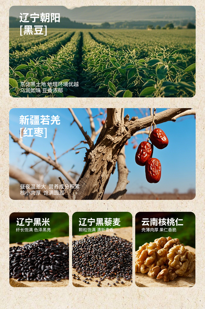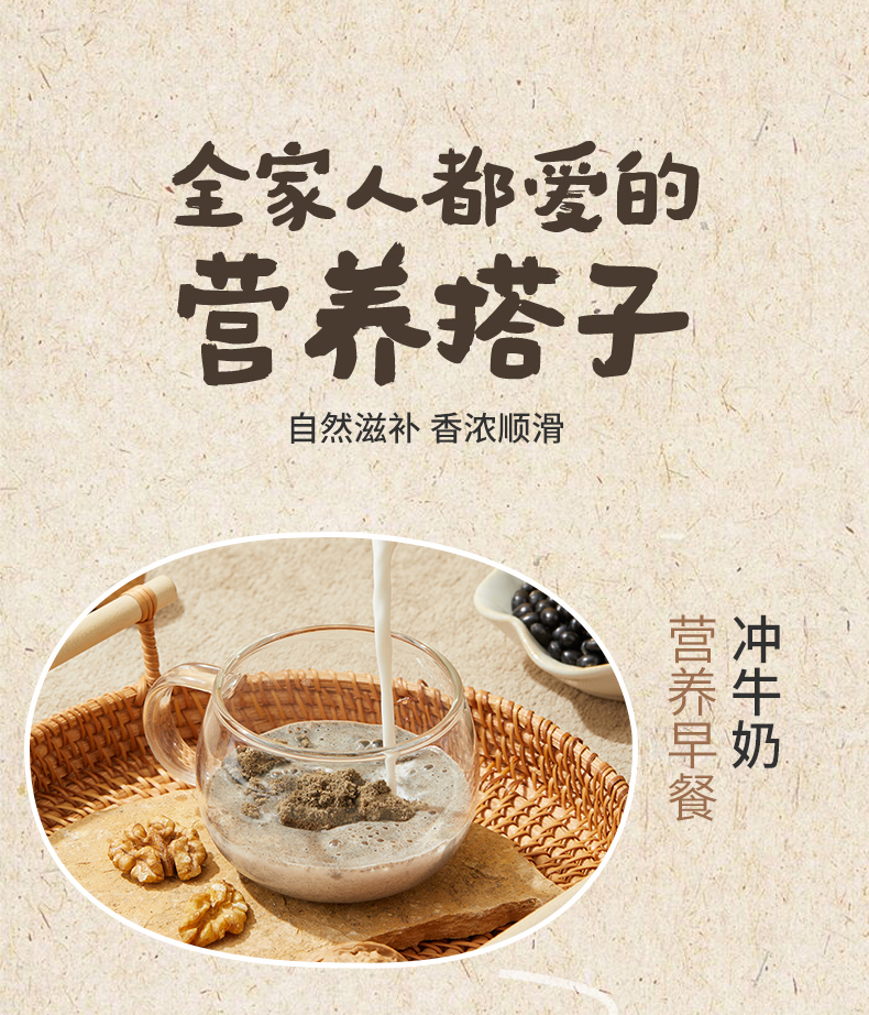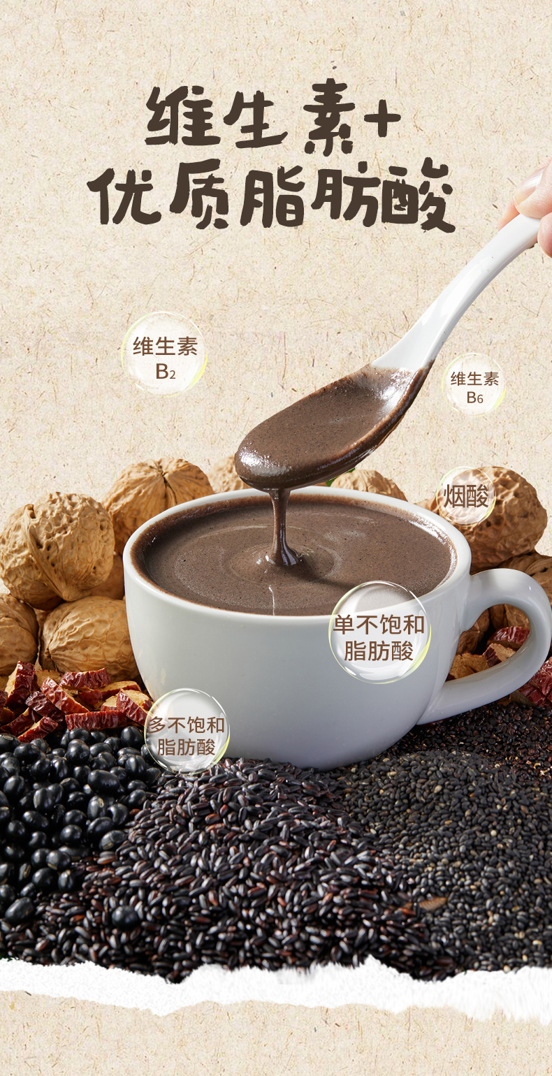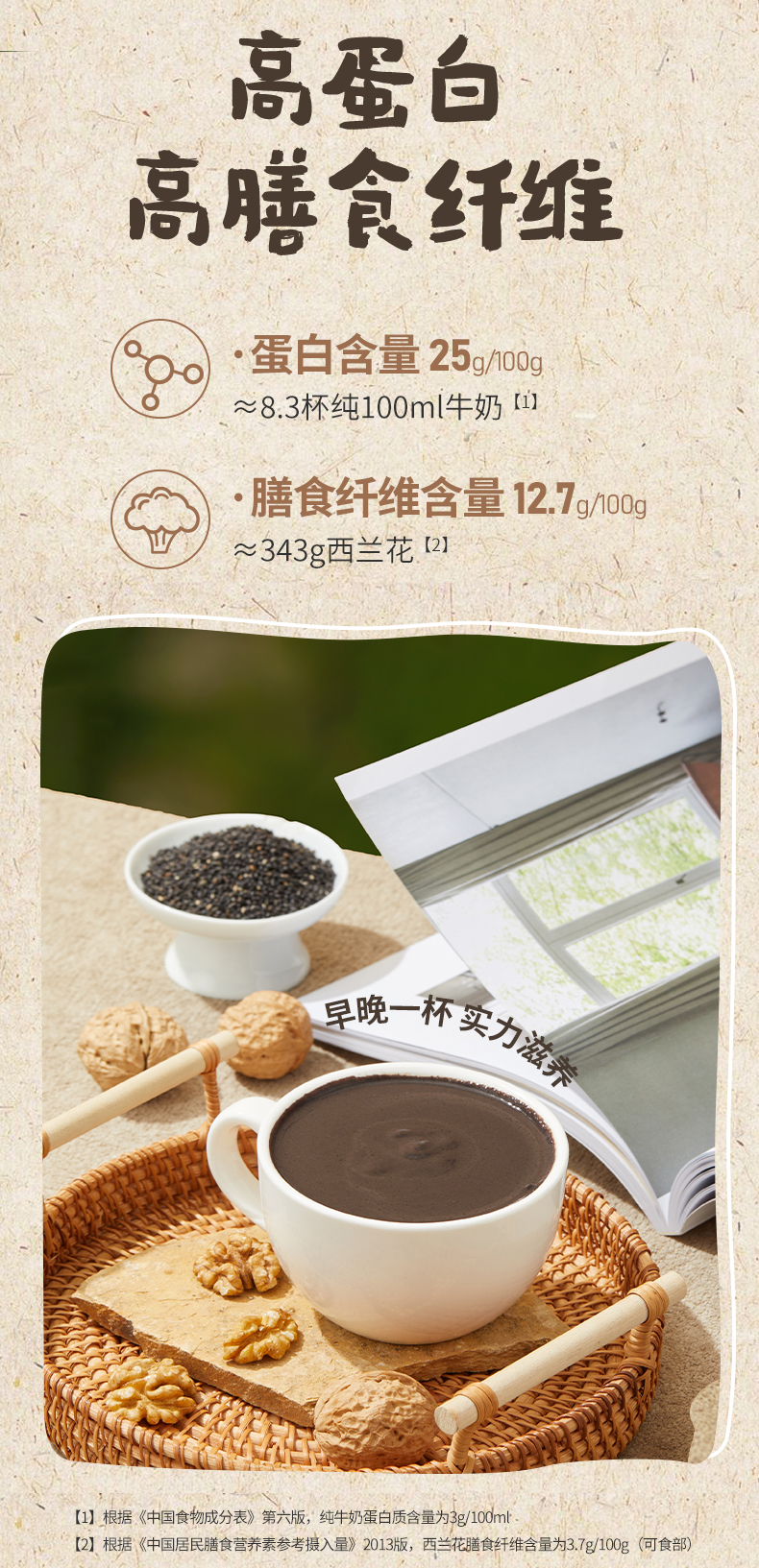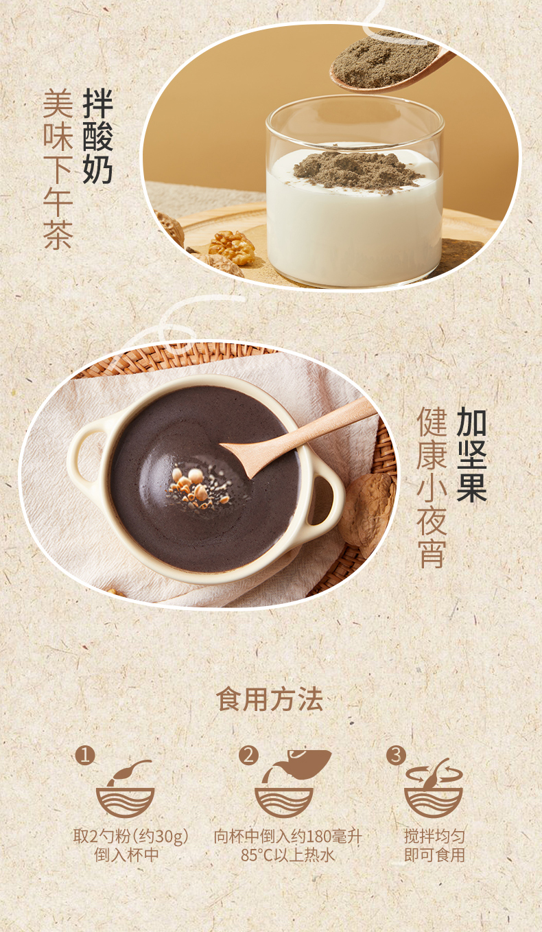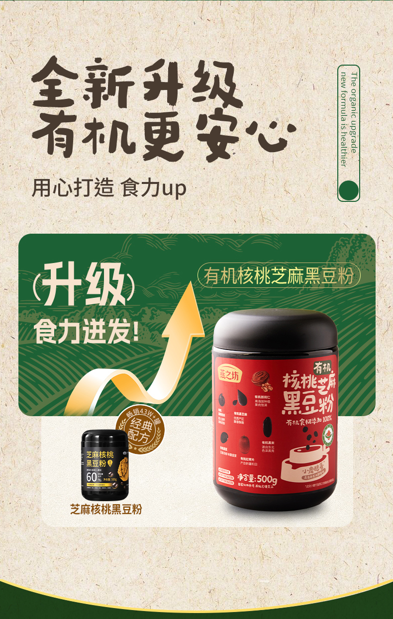 燕之坊有机核桃芝麻黑豆粉500g 黑芝麻糊五谷物粉营养早餐即食速食代餐粉 升级有机版